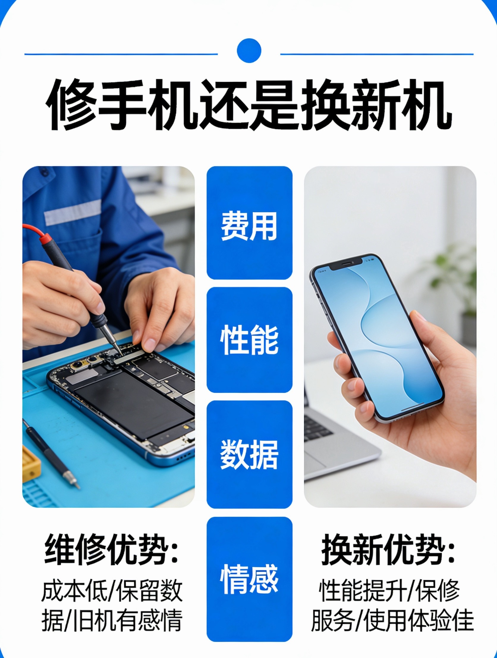如果只是小毛病,修修就好了,换个电池屏幕什么的,维修费用不会特别高(相较于购买新机费用),更何况现在新机价格涨了,如果是普通零部件问题,那答案更显而易见手机售后维修价格谁最良心整了个大活