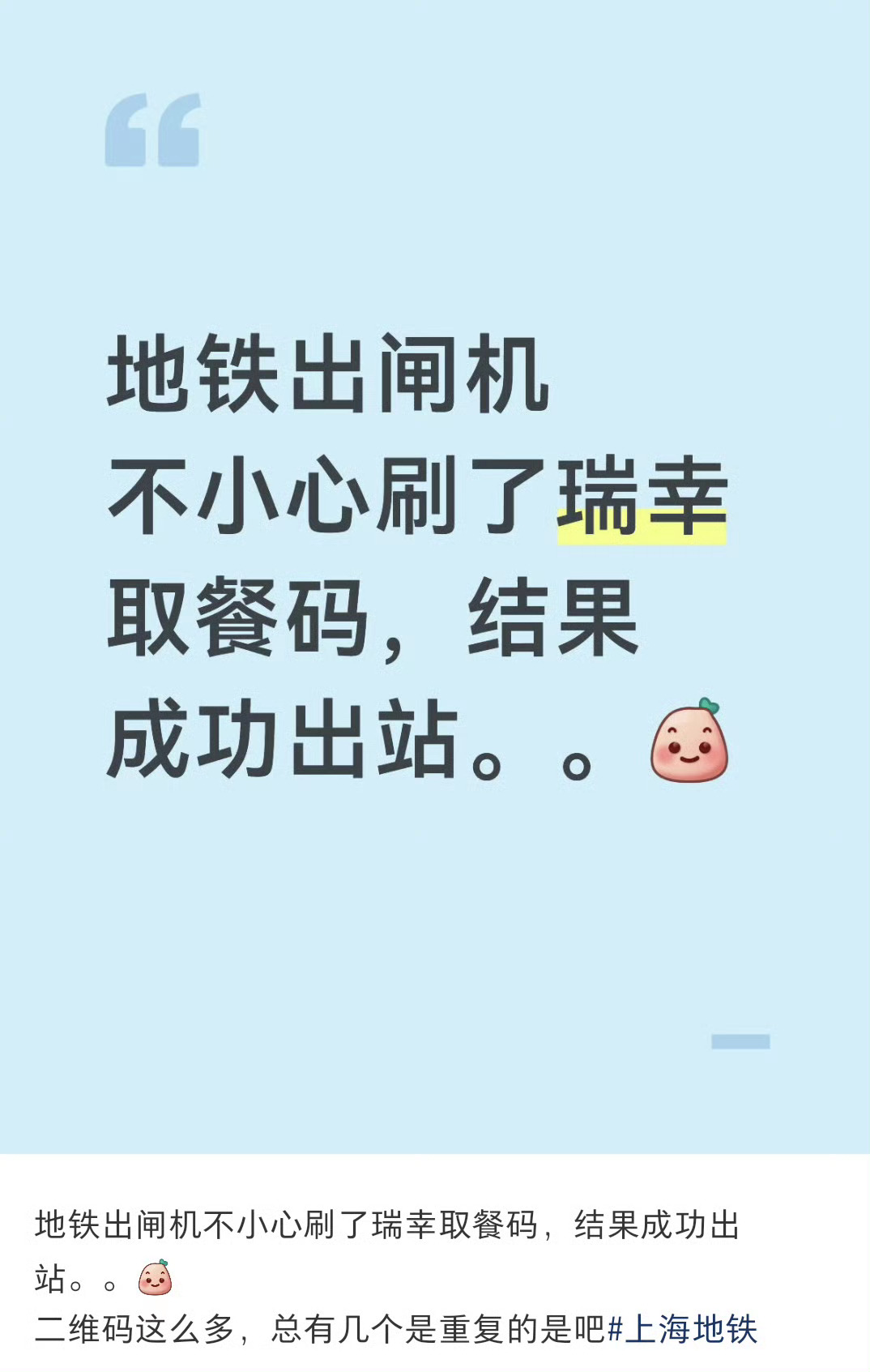 刷取餐码出了地铁站 有人编就有人信“二维码这么多总有重复的吧”编故事能不能找点有学历的来啊
