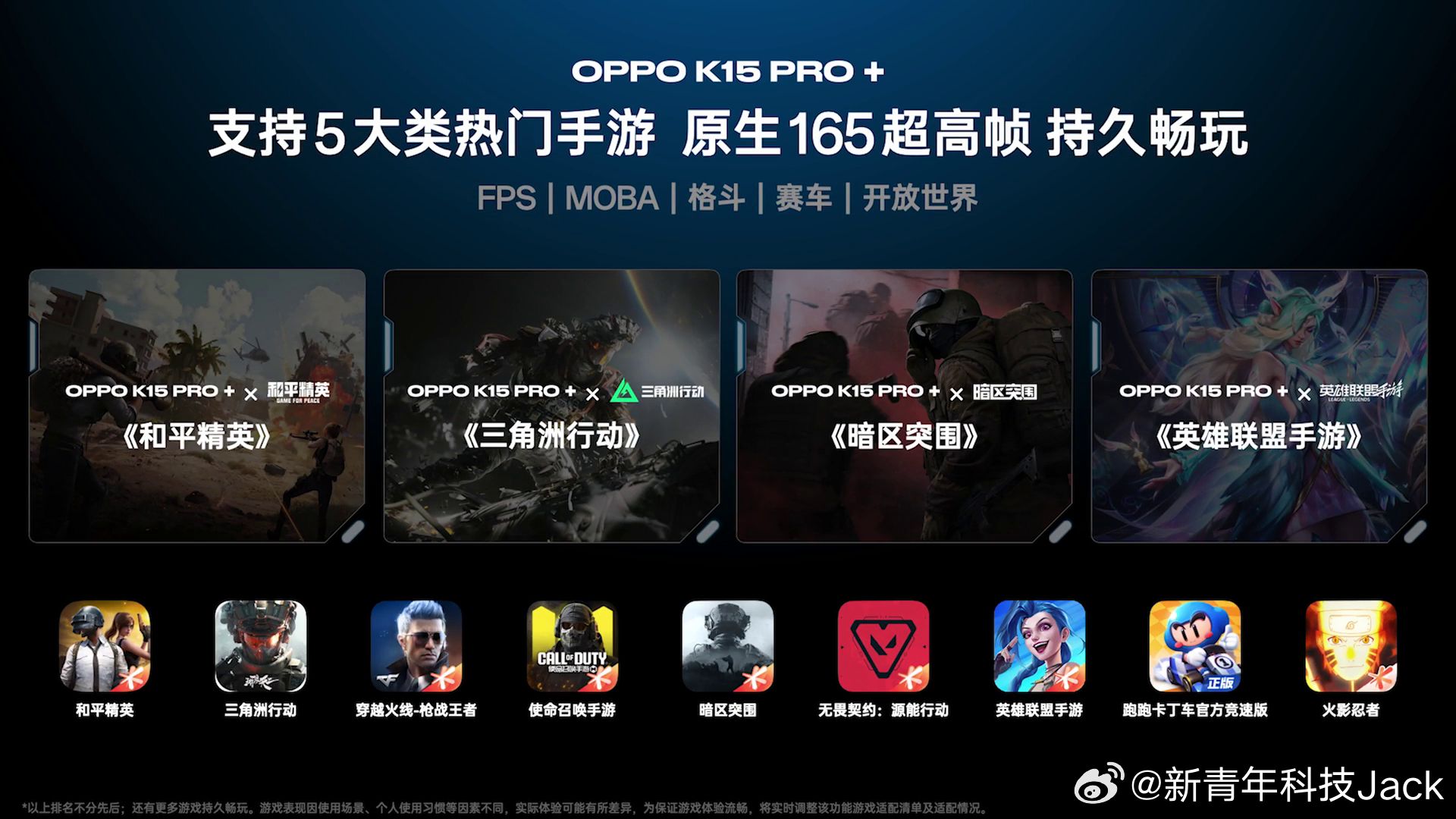 OPPO K15 Pro+来了,相比于Pro版本性能更强:天玑9500S旗舰芯屏幕更强:6.78英寸的165Hz超感高刷屏扬声器更猛:四发声单元同轴双扬声器游戏操控更好:专业手柄级陀螺仪+超感触控芯片+灵犀按键电池更大:8000mAh电池指纹体验更好:超声波指纹充电更快:100W闪充