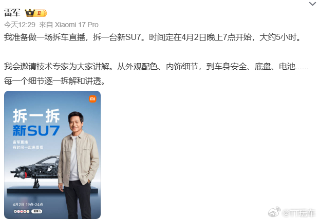 小米汽车新一代su7 雷总又要直播拆车了,够了真的看够了,其他家快点也拆一个吧。
