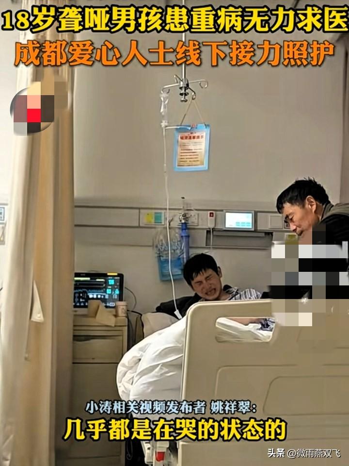 18岁,60斤。 如果不是亲眼看到,谁敢信这是一个成年小伙子的体重? 看着小涛那张被病痛折磨得只剩皮包骨的脸,我真的破防了。 成都这次被网友们“上大分”,不是因为宽窄巷子的热闹,也不是那一顿顿火辣的美食。 而是分散在这座城市里,那群热心肠的“成都好人”。 当然,这事儿还得从云南说起。 那个聋哑男孩小涛,长期被病痛折磨,18岁的小伙子,看起来却像一个还没长开的初中生。 他身患肠瘘,痛得裂着嘴流眼泪,却哭不出自己的声音。 家里条件实在太差了,父亲从来没有想过放弃他,但因为拿不出手术费,只能被迫接受保守治疗,眼睁睁看着孩子受罪却无能为力。 如果不是同病房的姚女士看不下去,发了一条求助视频,这孩子可能真的就熬不过去了。 好在,一条视频,激发了无数爱心。仅仅一天,10万手术费凑齐! 为了寻求更好的治疗,3月27日深夜,小涛从云南转到了成都华西医院。 而到了成都,小涛又被一群爱心人士宠成了自家的孩子。 成都这边,以小青女士牵头的爱心志愿者,组建了一个爱心群接力帮忙。 志愿者们帮着挂号拿药,做一切需要跑腿的事情。 她们不但捐钱筹款,还轮流送精心搭配的营养餐,给小涛买新鞋子。 对于小涛来说,也许他前面18年的人生,都没有这几天得到的关爱多。 不是家人不爱他,实在家里也没办法。 家里一直领补助金生活,能过日子、有口饭吃就已经很不错了,哪里还有钱买好菜? 志愿者们也说了,等小涛康复后,他们还要给他配上一个耳蜗,让他能听听这个世界温暖的声音。 我想,当那么一天,小涛真的戴上耳蜗,他学会说的第一句话,一定是“谢谢”。 一个人的力量或许单薄,但无数个凡人的微光,终能汇聚成照亮生命的火炬。 为云南的好心人点赞,也为成都这座有温度的城市上大分! 素材来源:四川手机报,侵删 好人好事 爱心志愿者