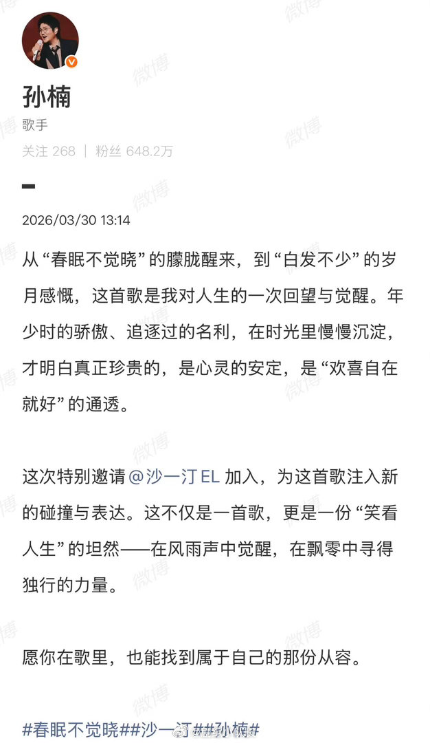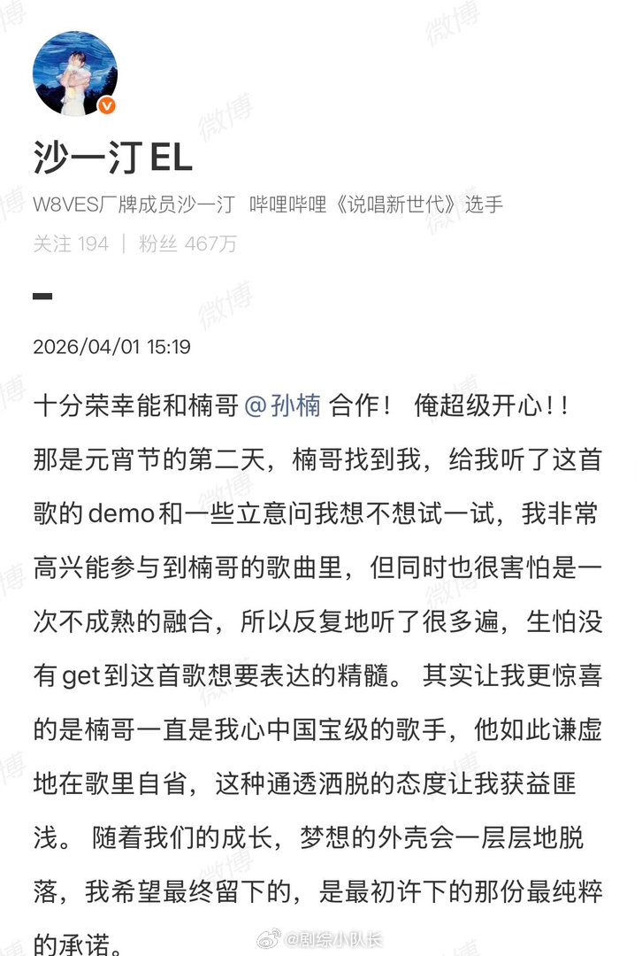 孙楠沙一汀合作新歌 沙一汀的追星之路太励志了!从合照底下的留言,到和孙楠合作新歌,这份被前辈认可的荣耀,真的配得上所有的掌声!