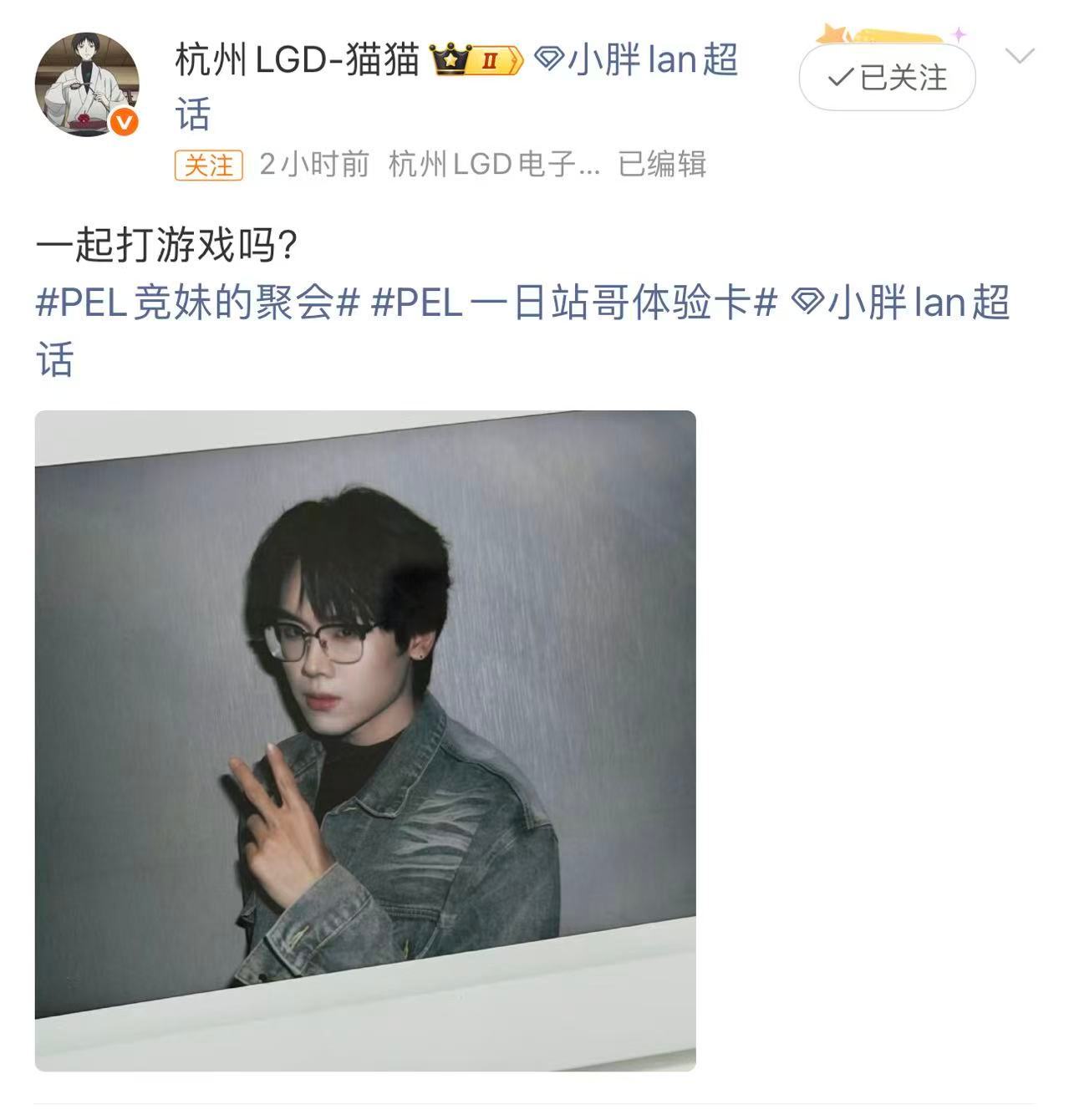花傲天期待LGD拿下更多荣誉 恭喜LGD周冠到手,花傲天送上祝福,愿队伍越战越勇
