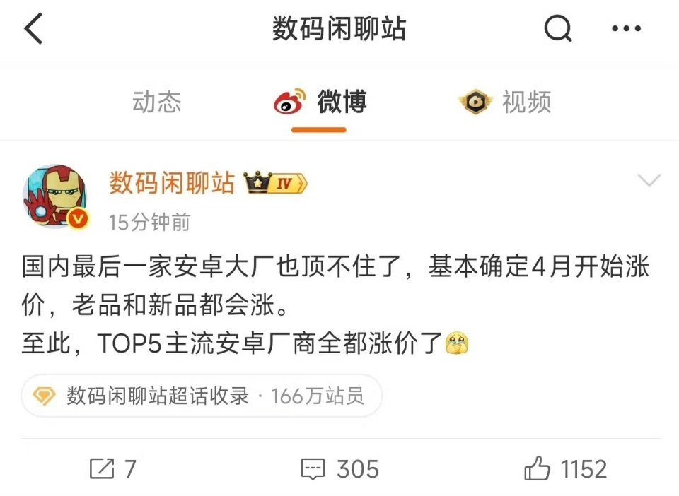 曝国内所有安卓大厂4月全涨价如果并非刚需换机,“等等党”这次可能等不来胜利。