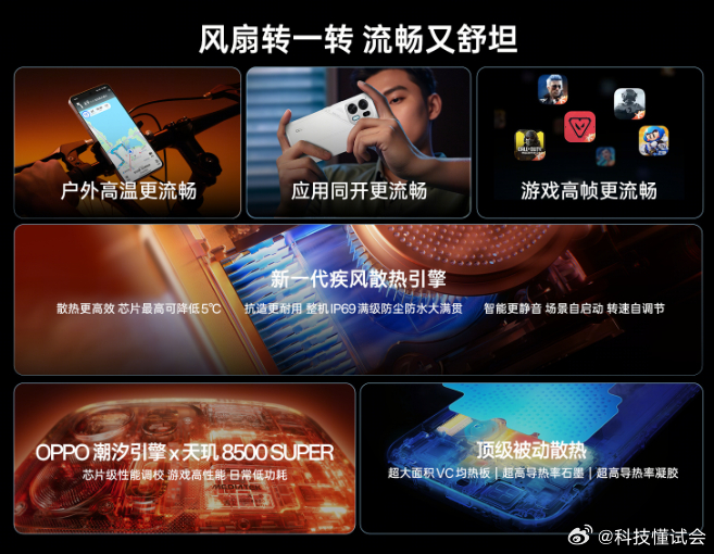 性能方面,天玑 8500 SUPER 加上OPPO 潮汐引擎芯片级调校,游戏体验会很不错。屏幕则是6.59 英寸黄金尺寸,搭载144Hz 超感高刷屏。