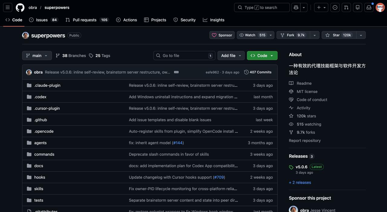 程序员兄弟们 最近github上这个项目火了,120k star 就说你是不是也是 习惯这样古法AI 用 Claude Code 或者 Cursor 写代码 ——直接把需求往对话框里一扔,然后就开始等代码。 AI 也是不管三七二十一直接开始写 但你仔细想想,这合理吗?这就好比你招了个实习生,他拿到需求二话不说就开始敲键盘,不规划、不测试、也不找人 review,写出来的代码质量能稳定才怪呢,全凭运气。 所以,Superpowers 这个玩意儿才这么火, GitHub 上 120K 的 Star 可不是白来的。 它干的事儿特简单,就是把那些优秀工程师的日常——比如先扯皮清楚需求、搞搞设计评审、坚持测试驱动、认真做代码审查,最后才是动手写代码——打包成了一套自动化的“技能包”(Skill)。 AI 装上这玩意儿之后,画风就变了。你再给它需求,它不会傻乎乎地直接开干,而是会先停下来,像个老鸟一样思考、规划,把前面那些步骤都走一遍。 同事几乎天天都在用,最直观的感受就是:装了 Superpowers 之后,AI 写代码的水平直接上了好几个台阶,尤其是在搞新项目的时候,那种“靠谱”的感觉特别明显。 所以,如果你平时也用 Claude Code、Cursor、Codex 这些工具写代码,真心建议你装一个试试。这玩意儿,谁用谁知道!