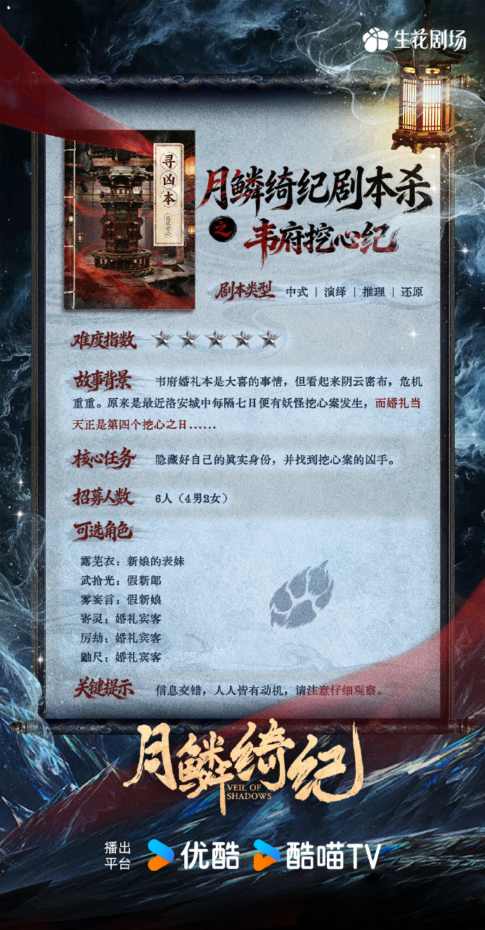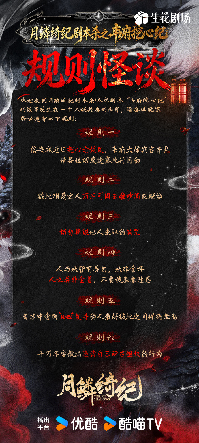 优酷月鳞绮纪美爆了月鳞绮纪原来是单元剧啊 现在才看明白原来👖的月鳞绮纪 是四个副本组成的单元剧!感觉每个趴都会相当精彩,现在第一个韦府挖心案就已经好刺激了🤩 好期待后续的剧情!