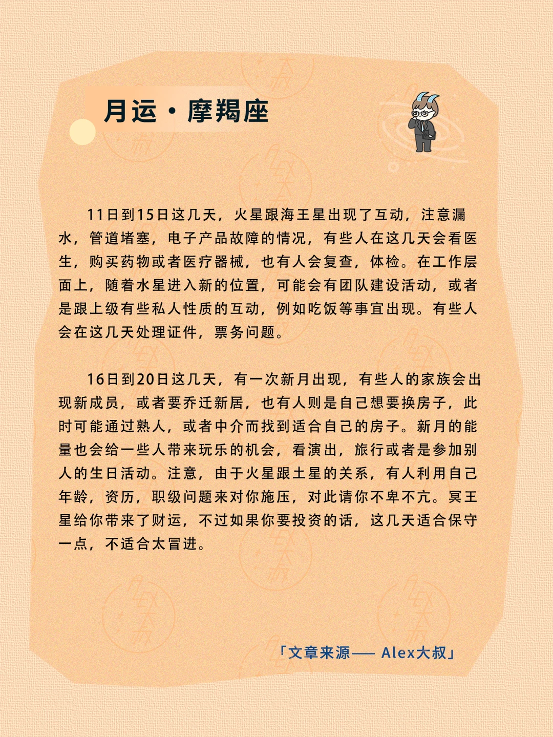 ALEX大叔 我的星座 星座运势 射手座运势 摩羯座运势