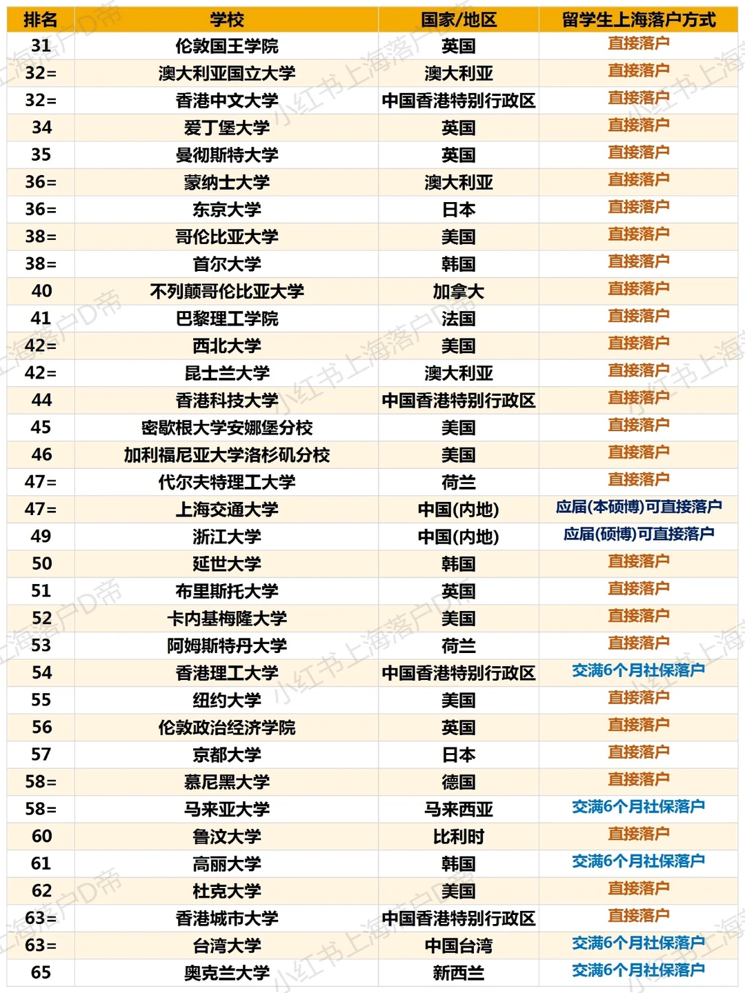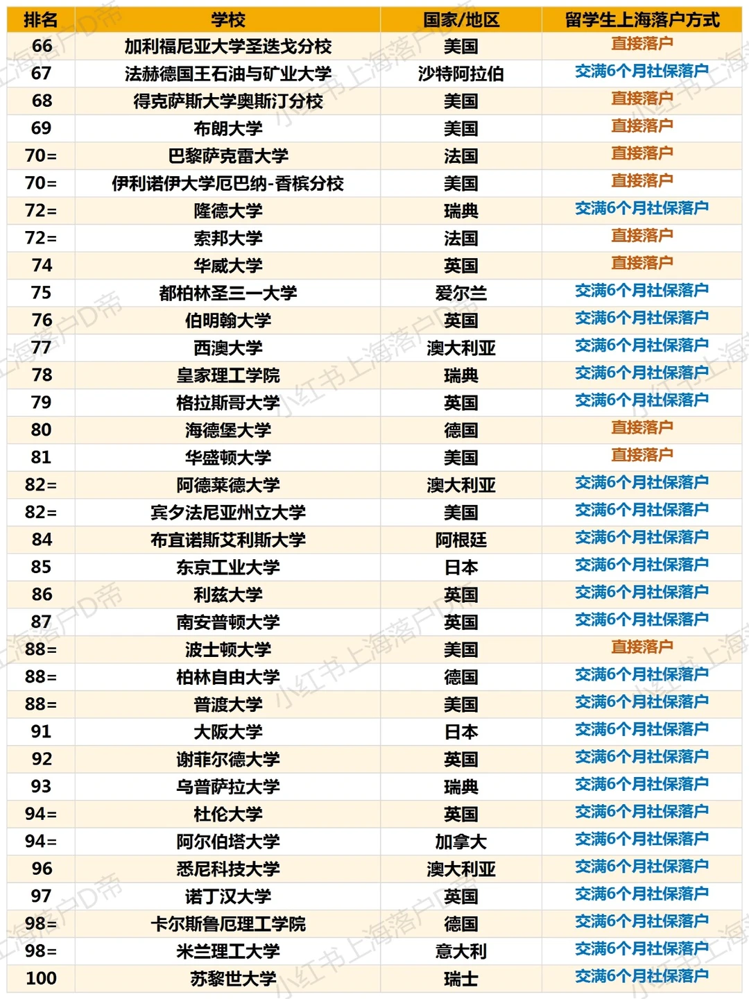 世界大学排名 QS QS100 留学生 留学生落户上海 名校 世界名校 排行榜 硕士留学 留学生直接落户上海