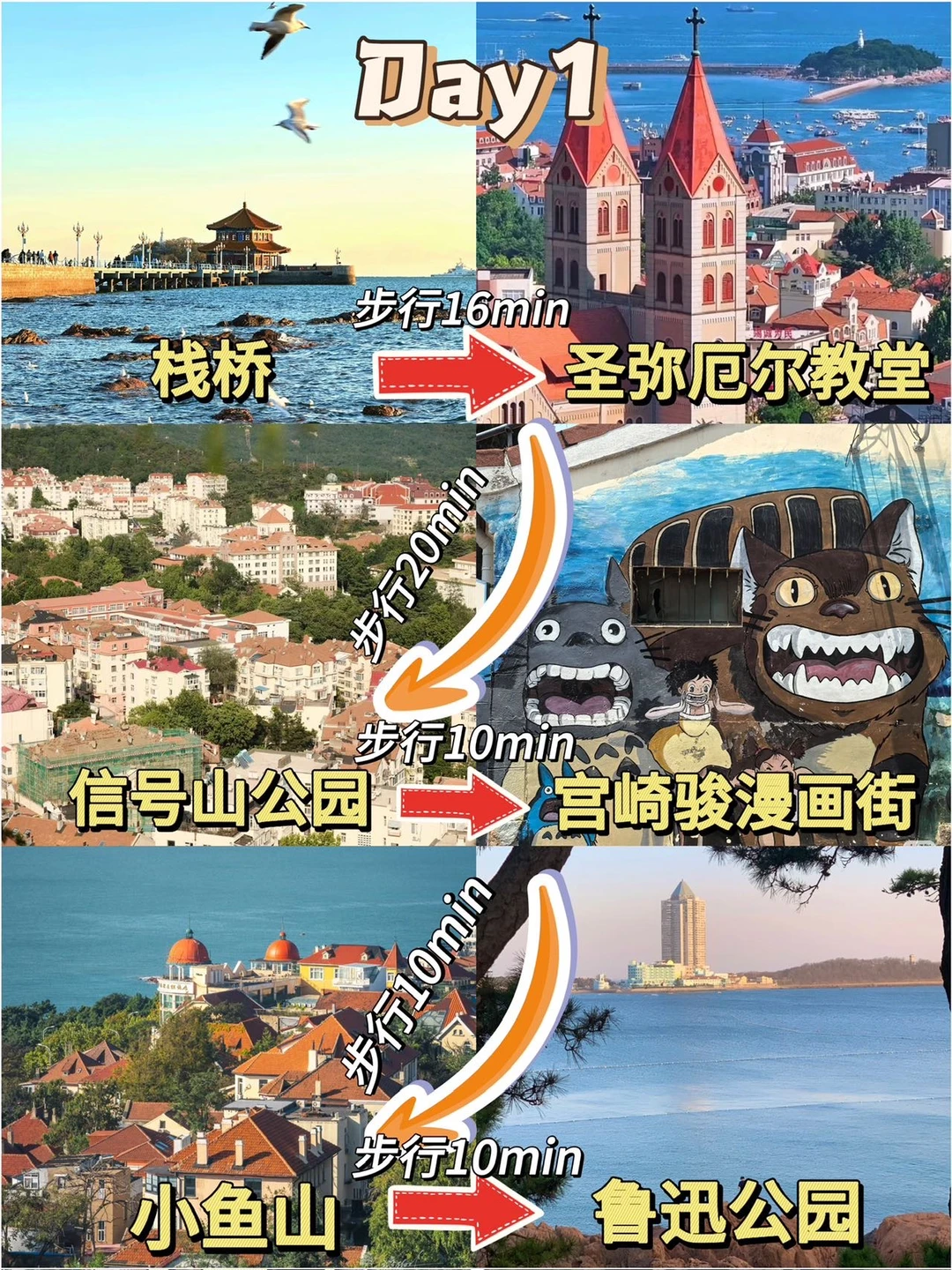 Day1:栈桥➡️圣弥厄尔大教堂➡️信号山公园