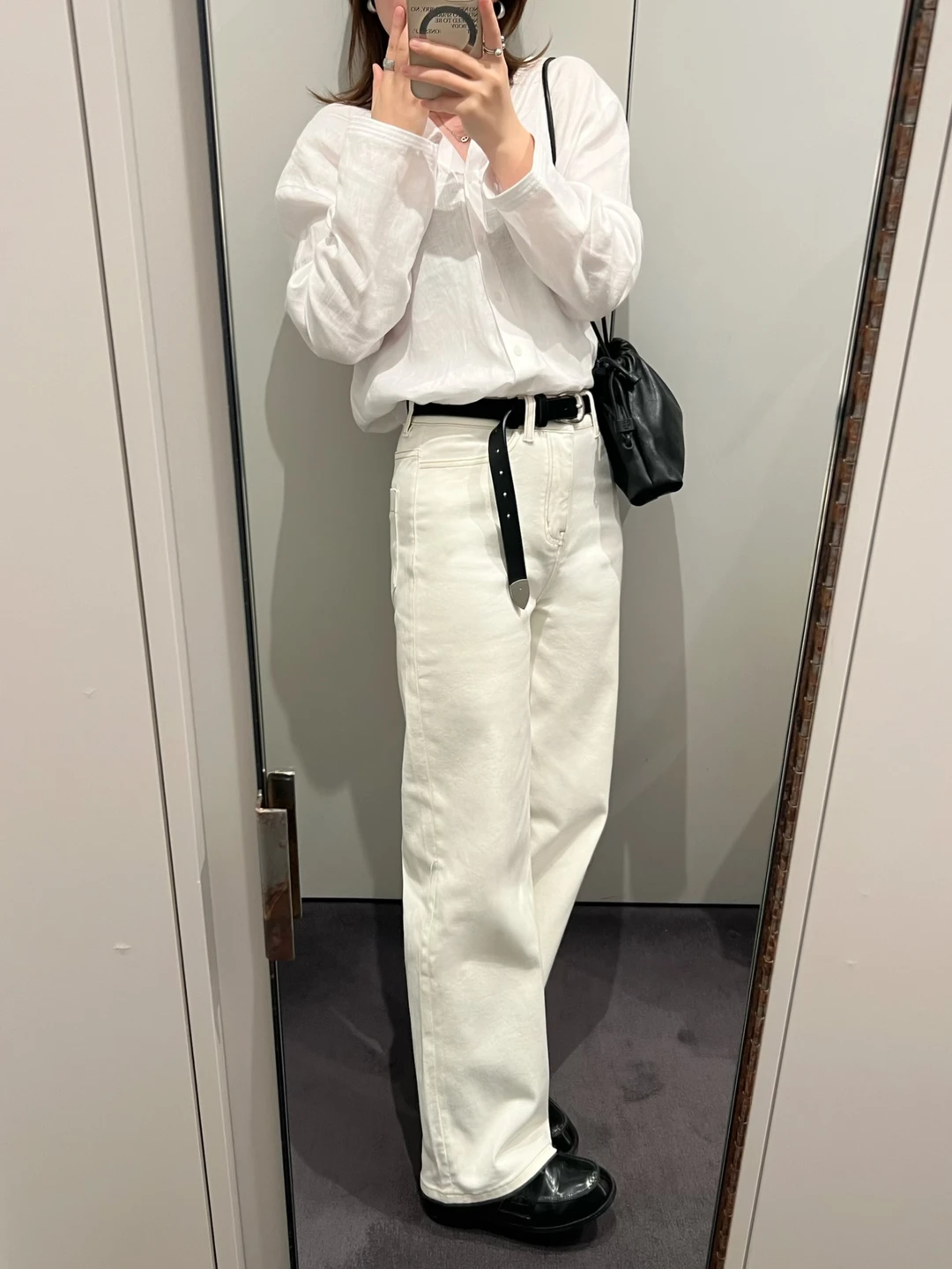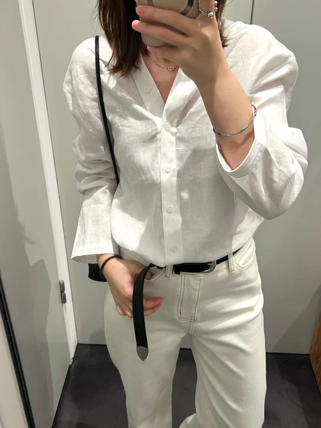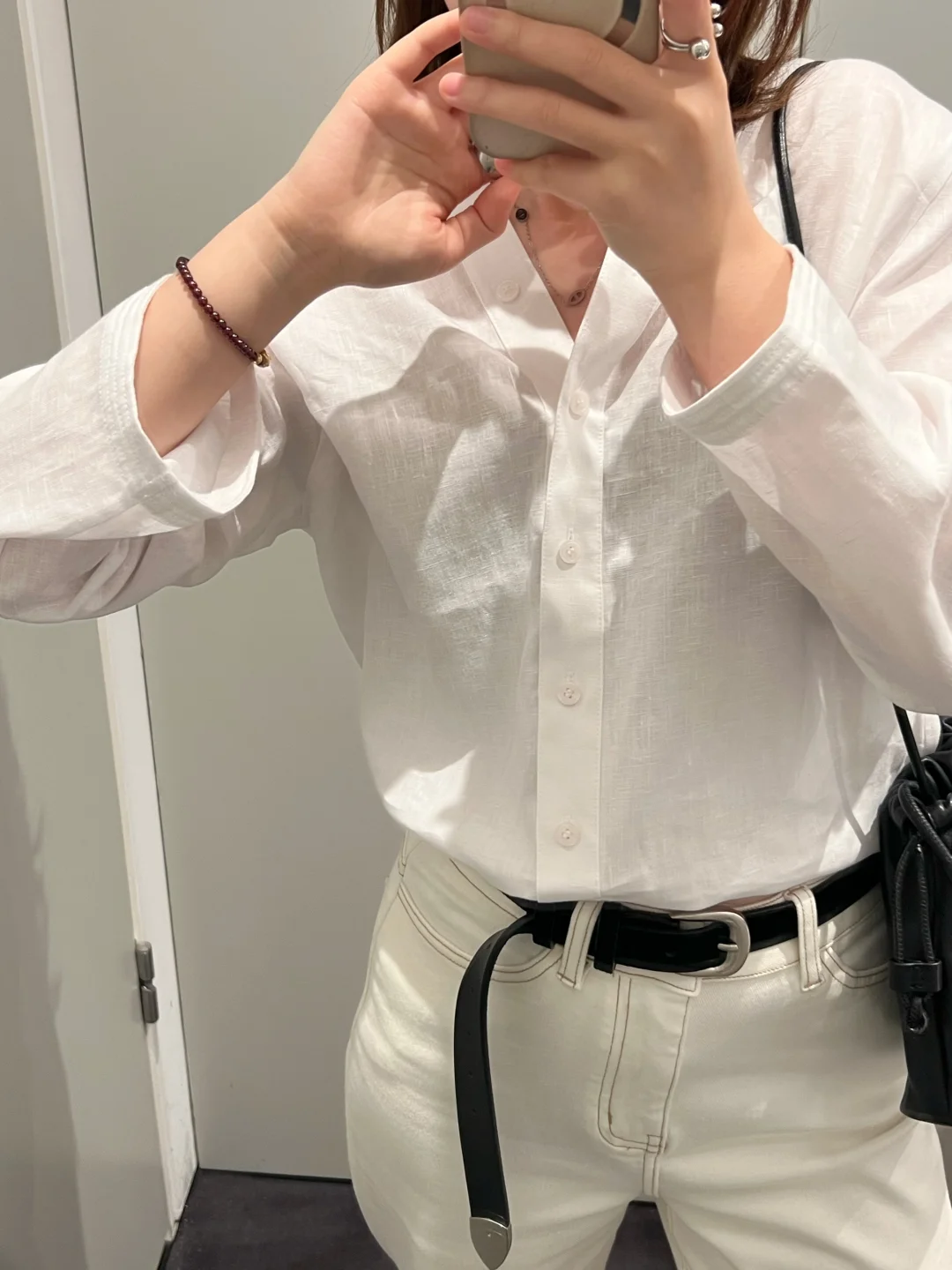 一眼心动的亚麻衬衫 白衬衫➕白裤子简单气质高级 黑色皮带和黑色小包是点睛之笔哦