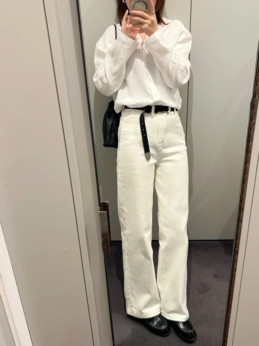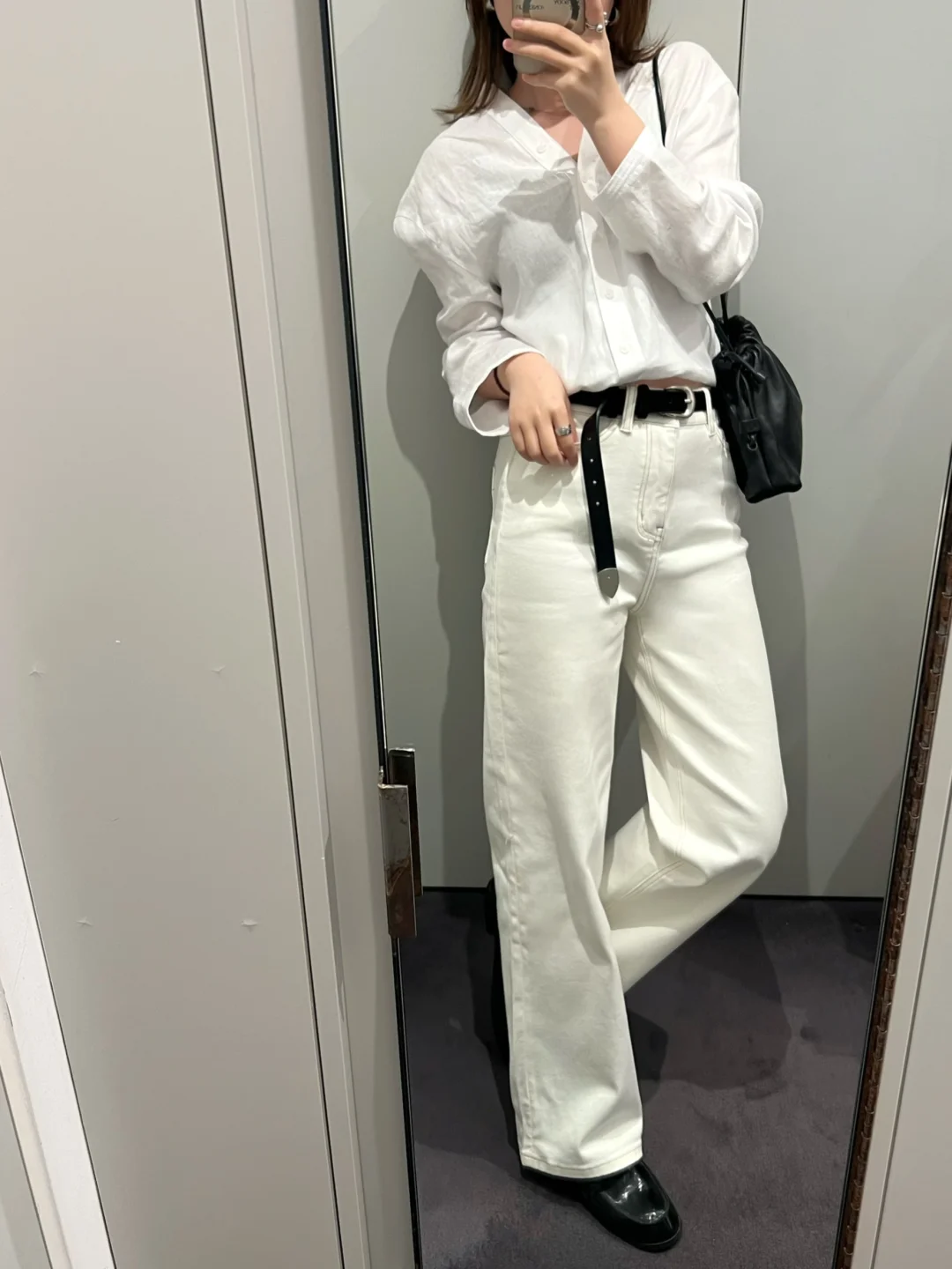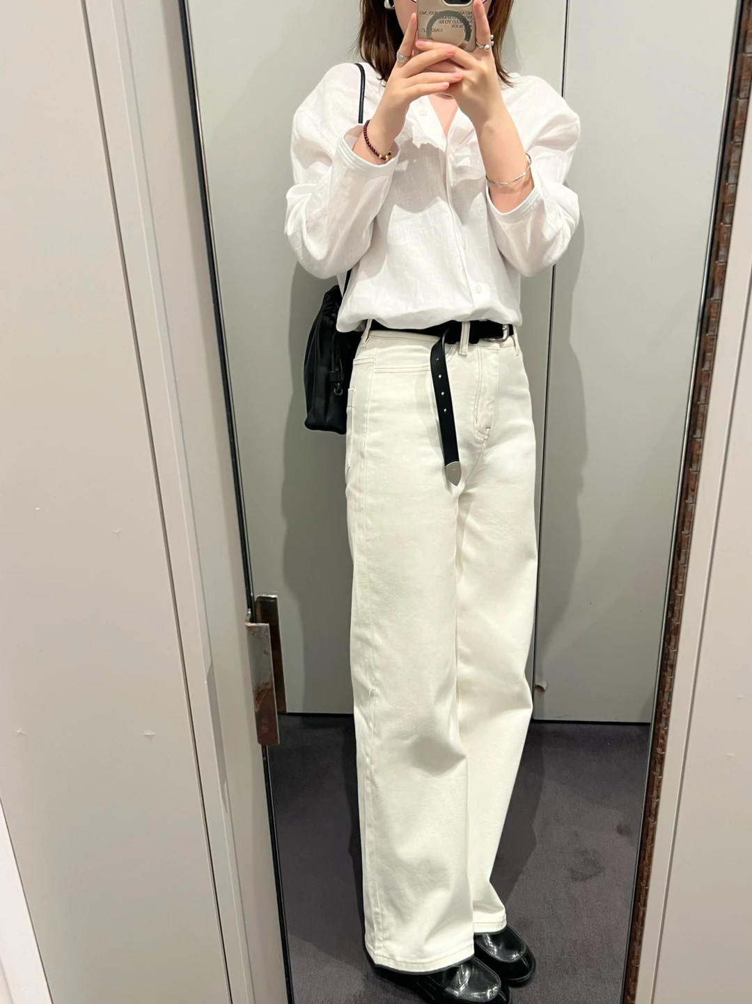 一眼心动的亚麻衬衫 白衬衫➕白裤子简单气质高级 黑色皮带和黑色小包是点睛之笔哦