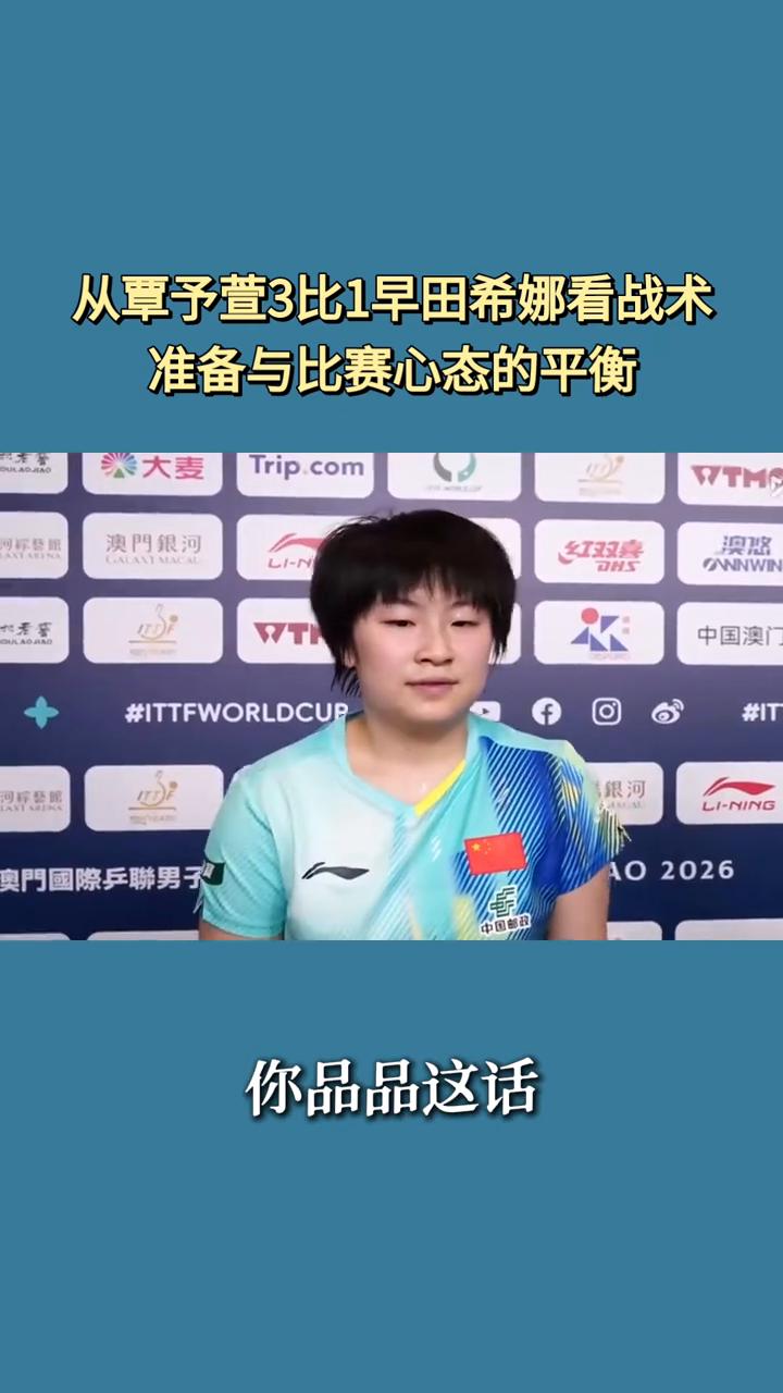 从覃予萱3比1早田希娜看战术,准备与比赛心态的平衡。 早田希娜输了,但你知道她输在哪吗?世界第五的高手赛前把孙颖莎、陈梦的录像翻了个遍,战术研究的比做手术还细,结果被一个她连名字都记不全的19岁小姑娘11:8、11:5两局打懵。 覃予萱说了句大实话:以拼的心态去打反而会好很多。你品品这话,人家压根没想着赢你,就是抱着反正输了也正常的心态往死里拼,反而把你这个做足功课的拼死了。第四局9:9平,早田希娜以为自己要翻盘了,结果一个擦网球游戏结束。 有人说这是运气,我说这是天道好轮回,你把时间花在研究大魔王上,小怪兽悄悄摸到你身后了。