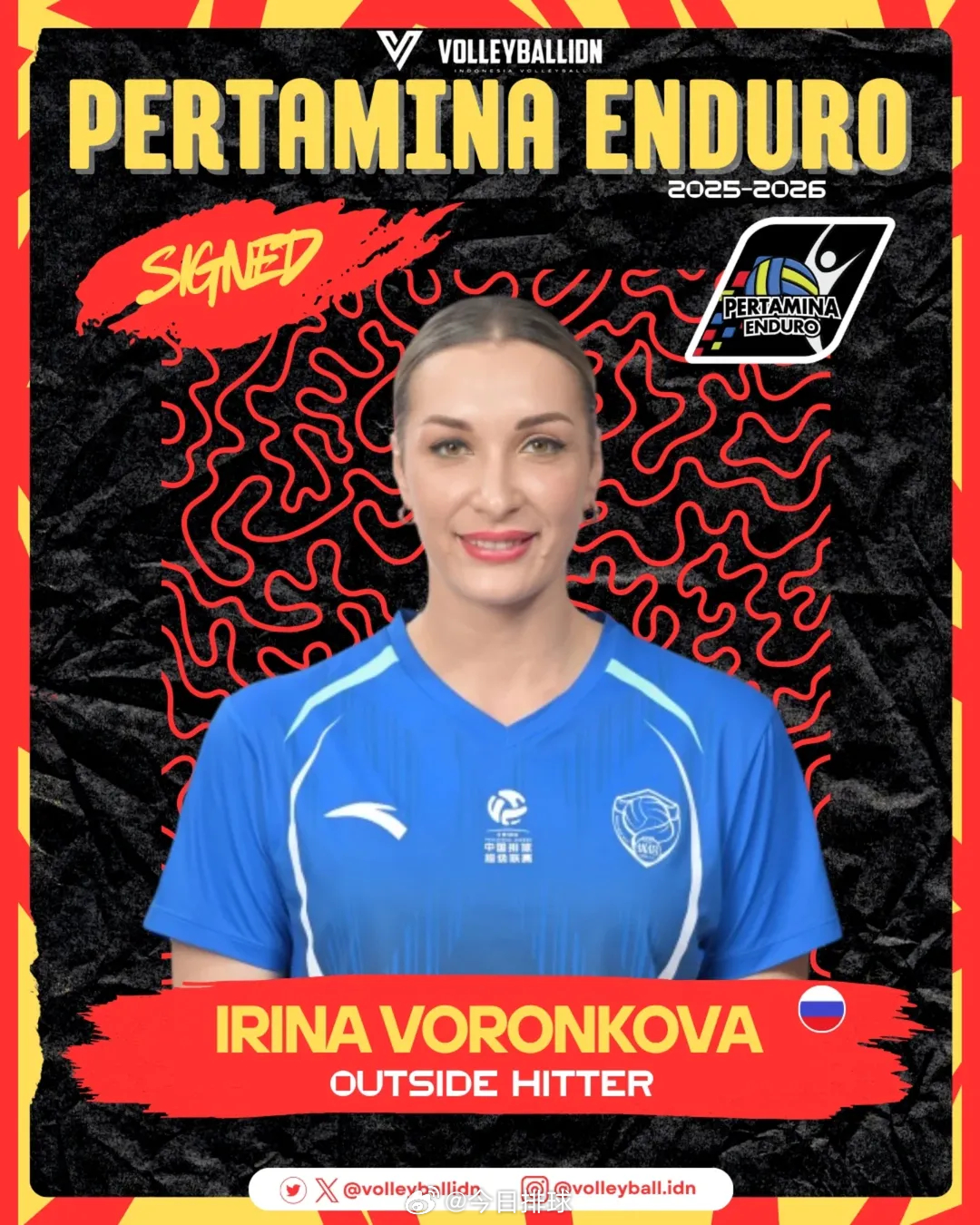 排球明星 今晚决战之后,沃伦科娃将前往印尼,加盟雅加达佩塔米纳恩杜罗俱乐部,征战印尼女排联赛四强赛。