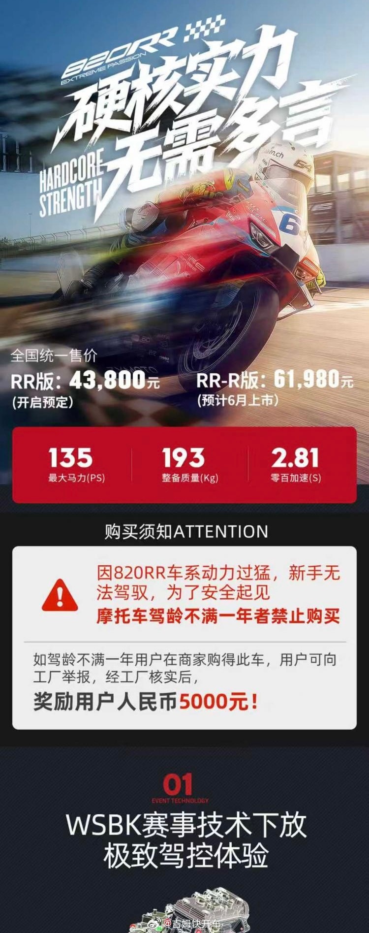 张雪机车爆单了这没理由不爆单啊,这还是摩托车驾龄不满一年者禁止买820RR的情况下,别人是巴不得多卖点,张雪是我希望少死点人,不差那点销量,话糙理不糙!