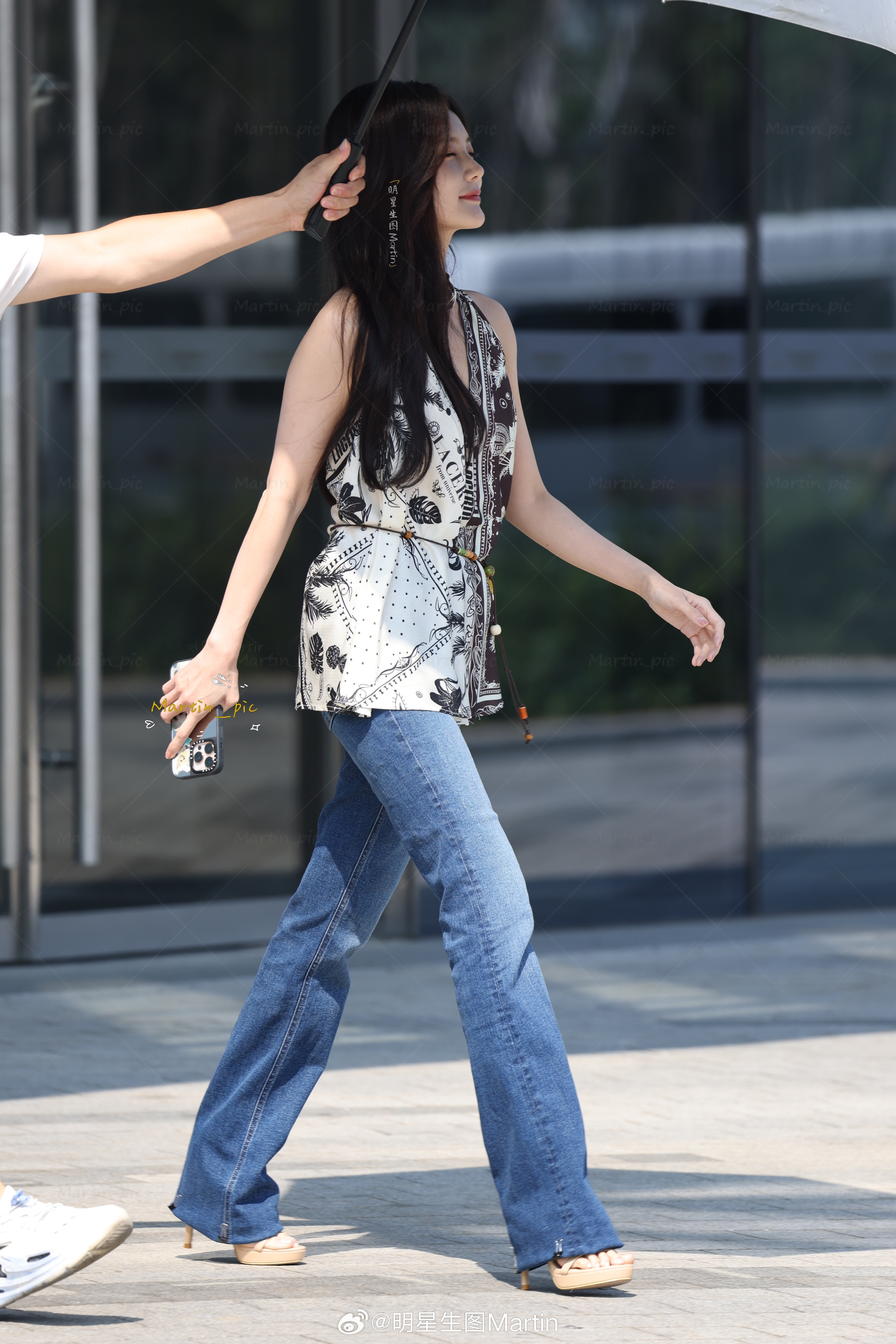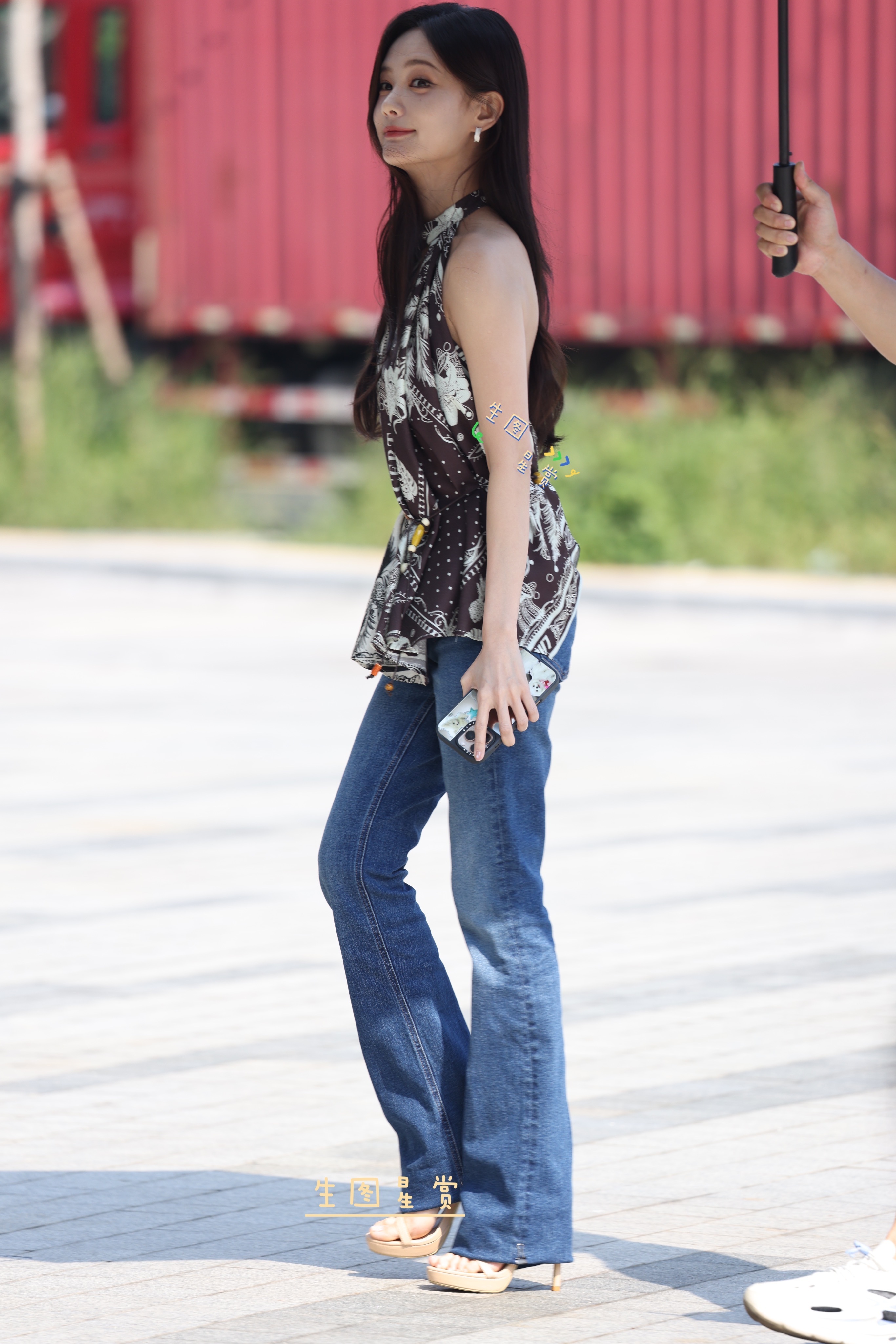 李一桐的狗狗会直播了李一桐 一桐挂脖露背衫牛仔裤大长腿裸色一字带细高跟