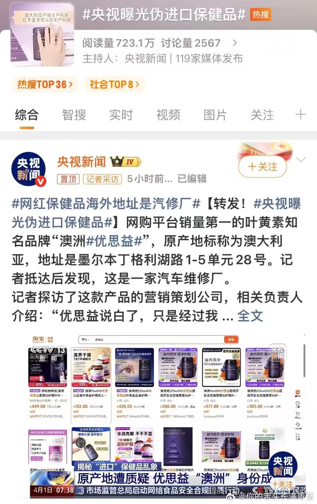 国内生产,香港或海外注册个空壳公司,办套进口手续,进保税仓转一圈,就成了“澳洲原装进口”“美国直采”。三部门对优思益展开调查一群人在瞎编种草文优思益幕后推手被查销冠澳洲优思益竟是假进口起底优思益涉事公司