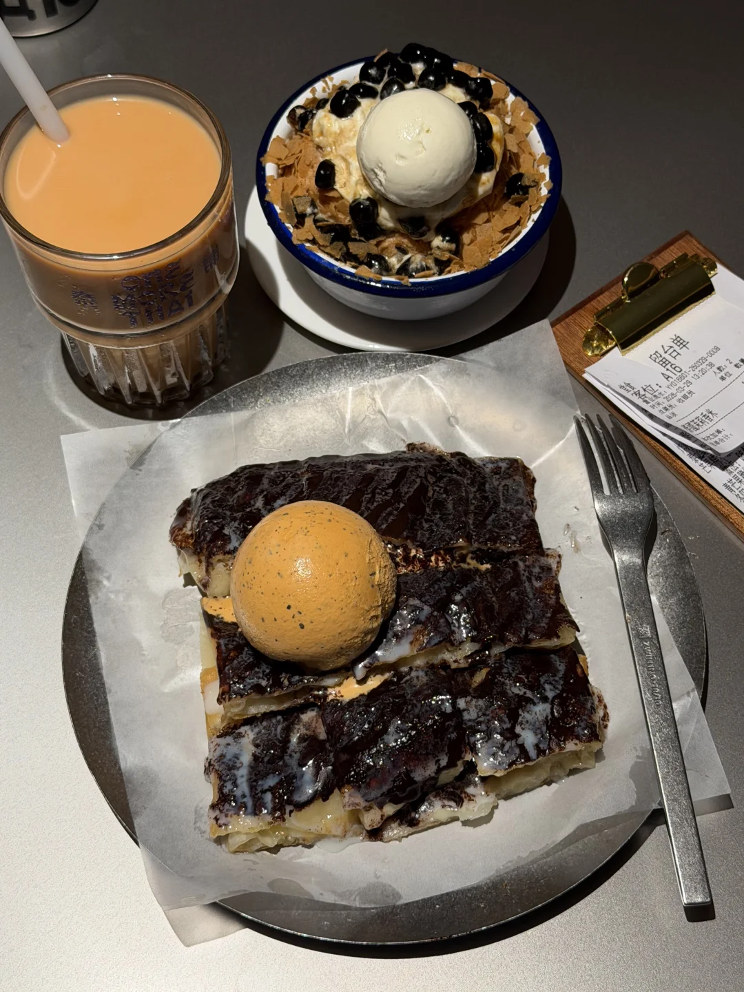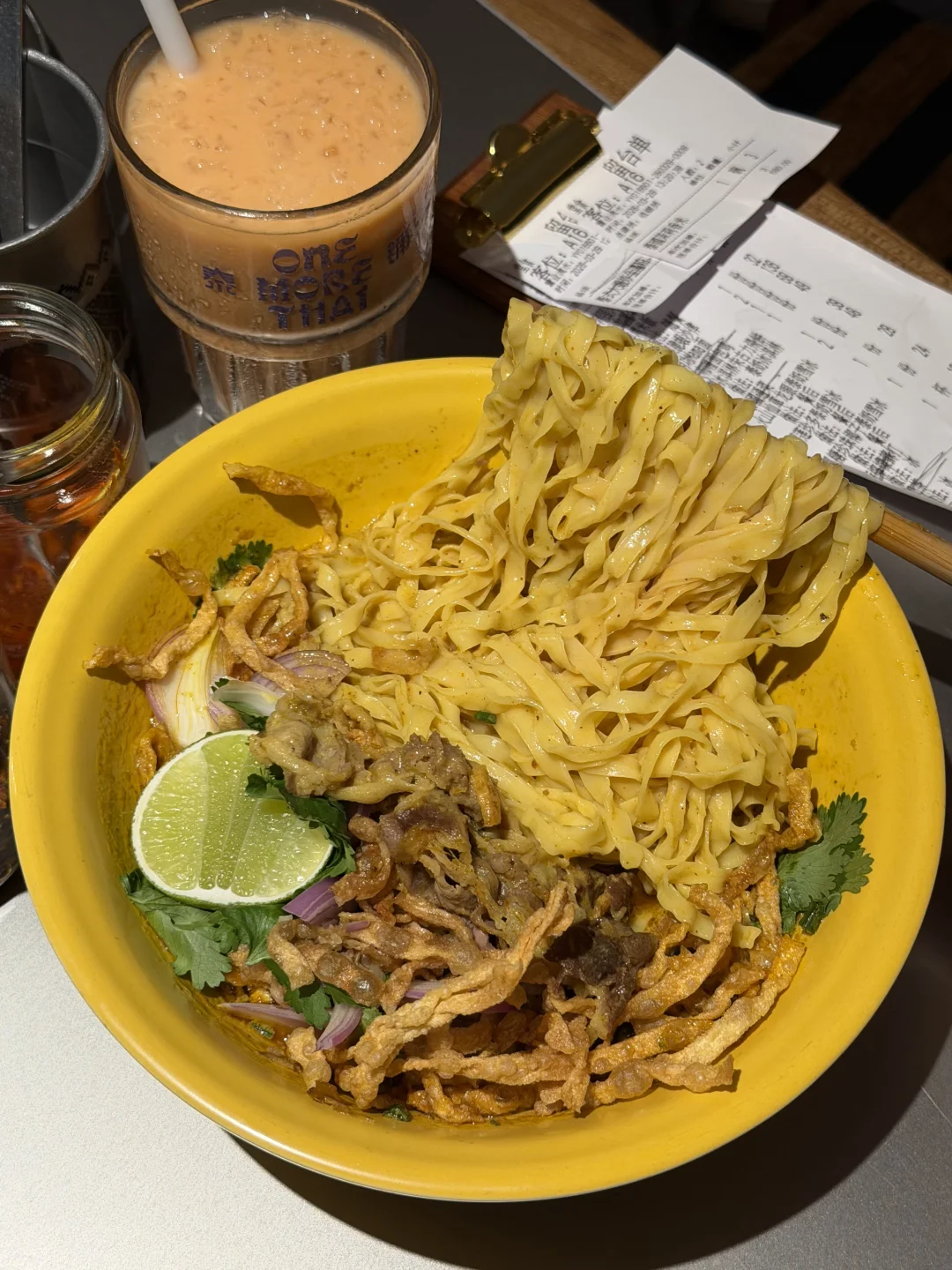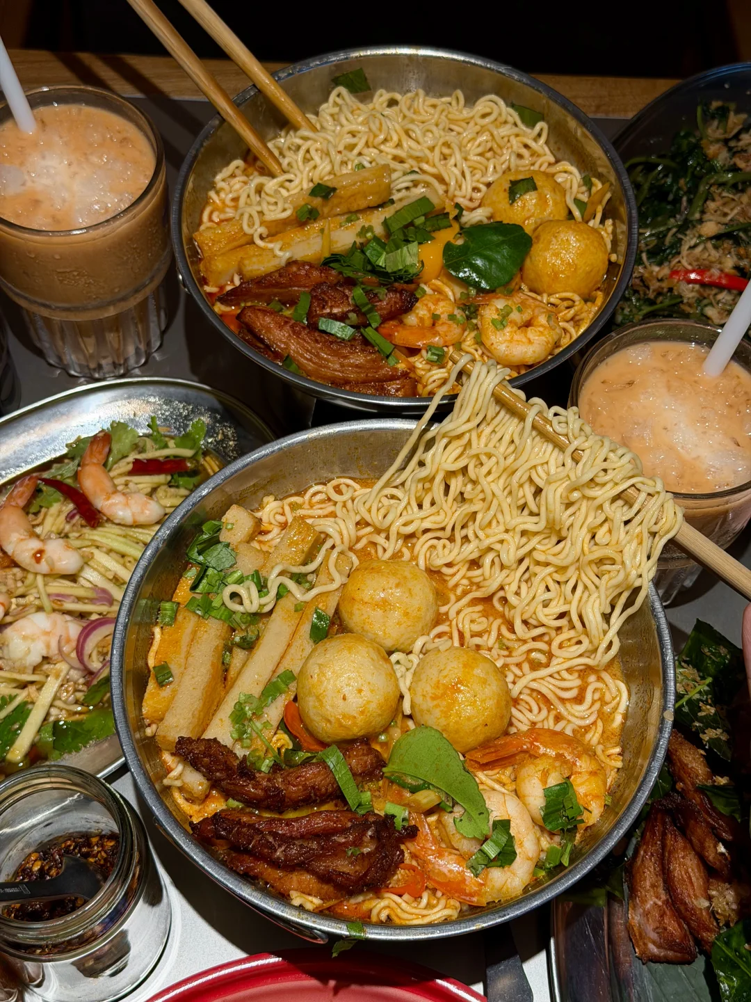 周末才跟朋友去的!就在万象城南区!我对好吃的泰餐真的没有抵抗力😭😭!!! 点的咖喱面包鸡、炸猪颈肉、牛金面都好好吃!墙裂安利mama面,冬阴功味很浓郁!里面食材特别的丰富!!!重点!!!泰奶相关的甜品可以无脑点!点了泰奶冰淇淋朱古力飞饼、火山仙草龙眼泰奶雪冰、还有带榴莲的,泰奶很浓郁不腻,值得反复去吃的!