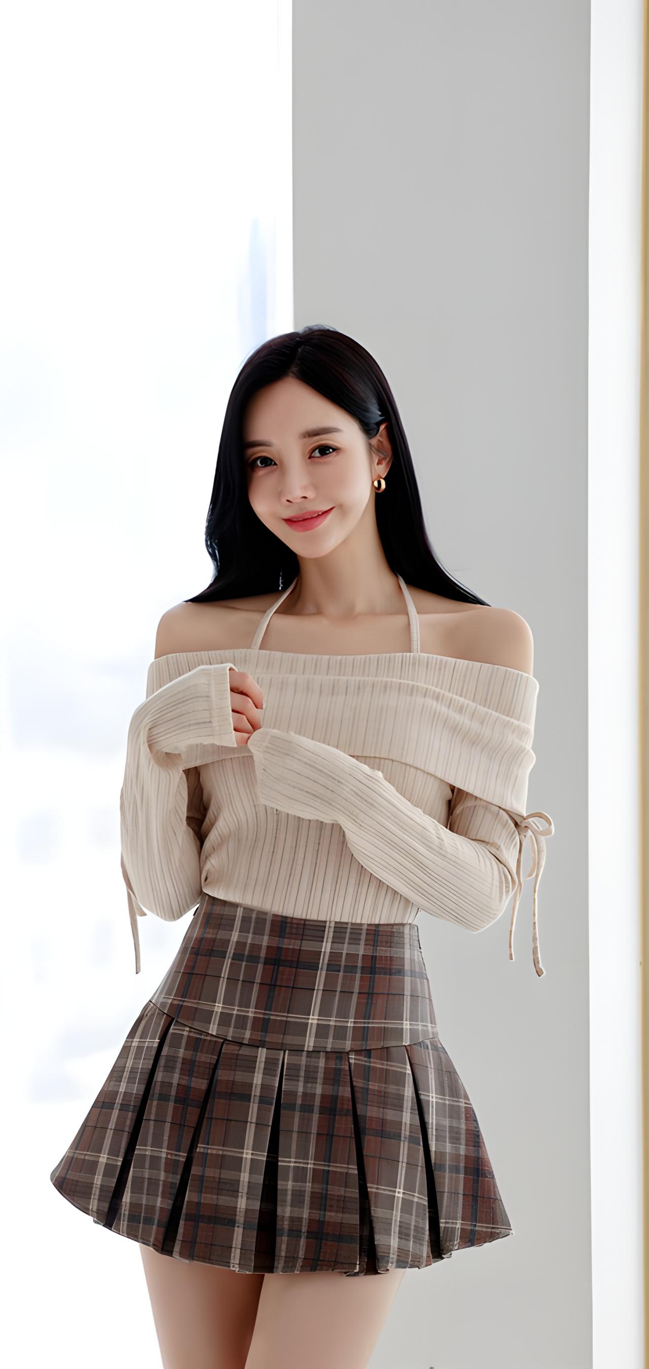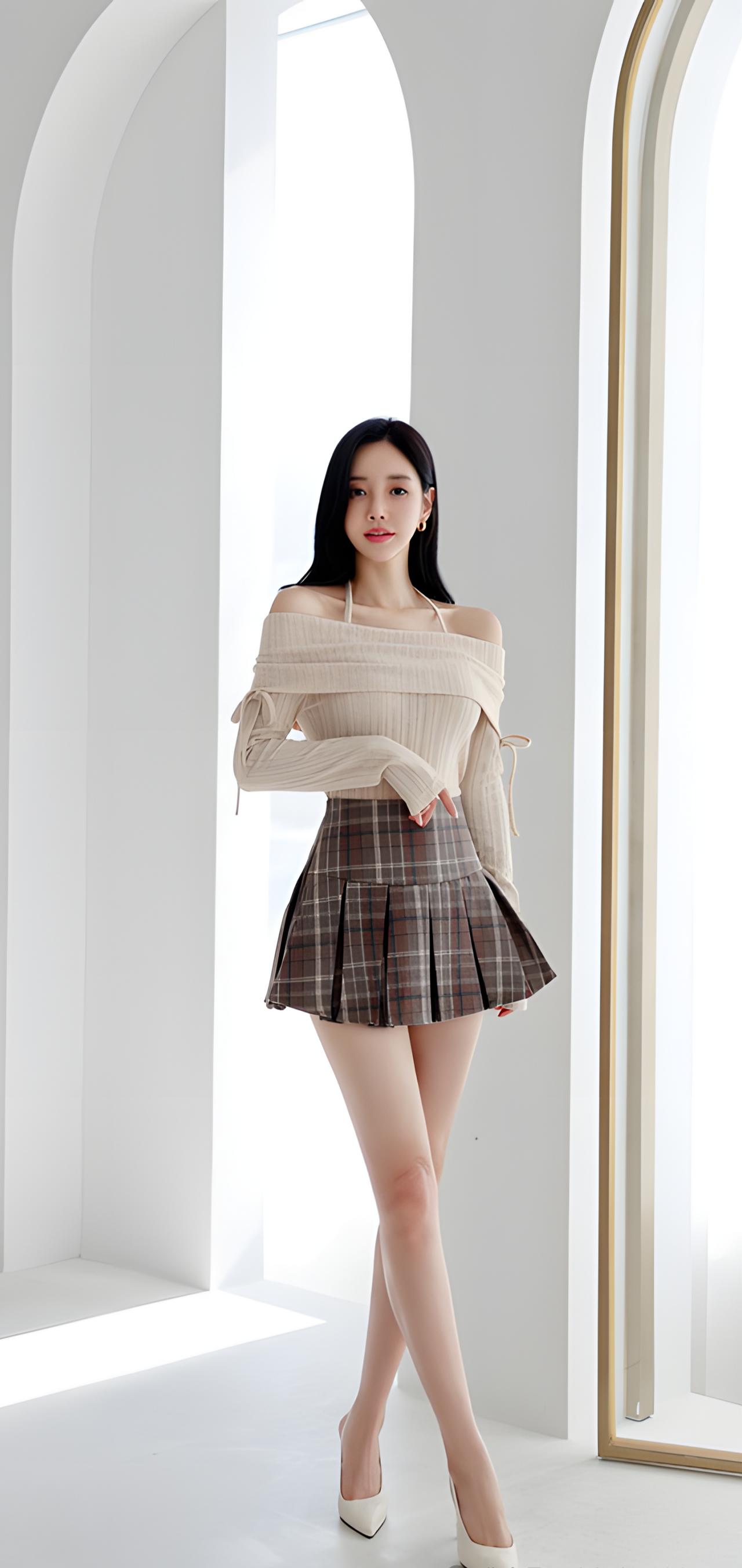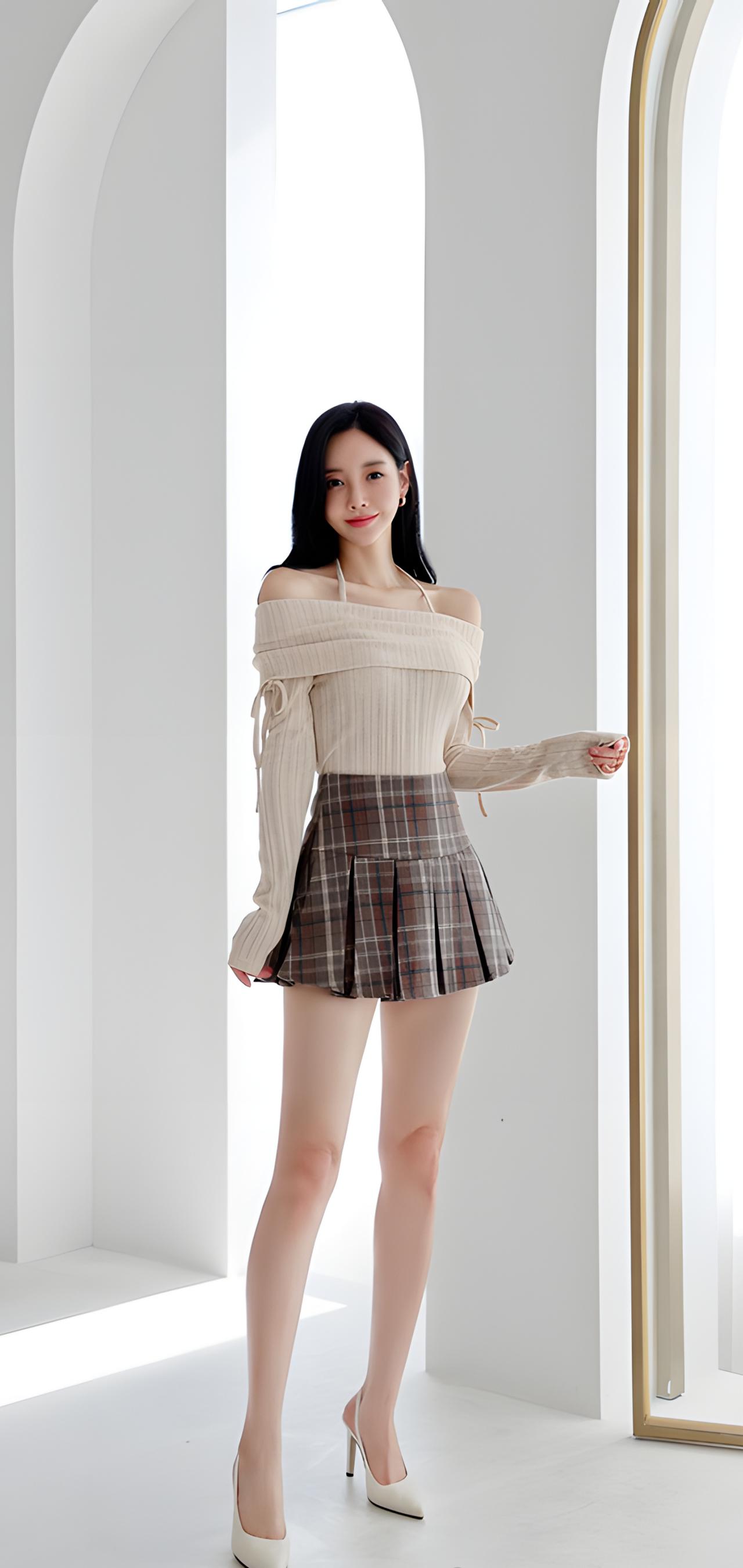 甜美学院风穿搭,米色毛衣搭配格子短裙,青春活力满满!💕
