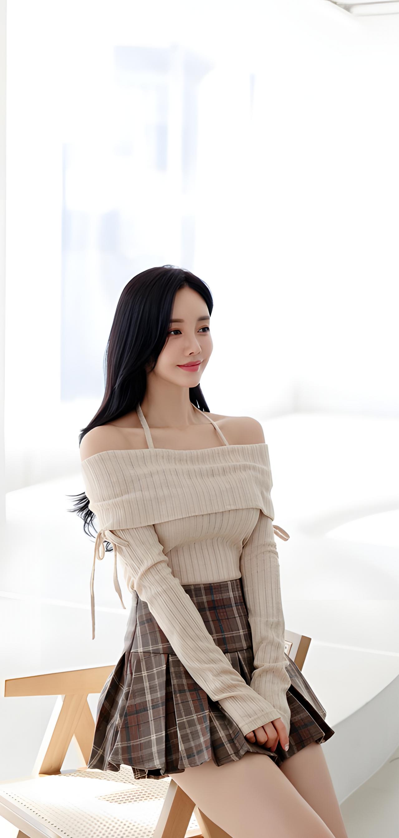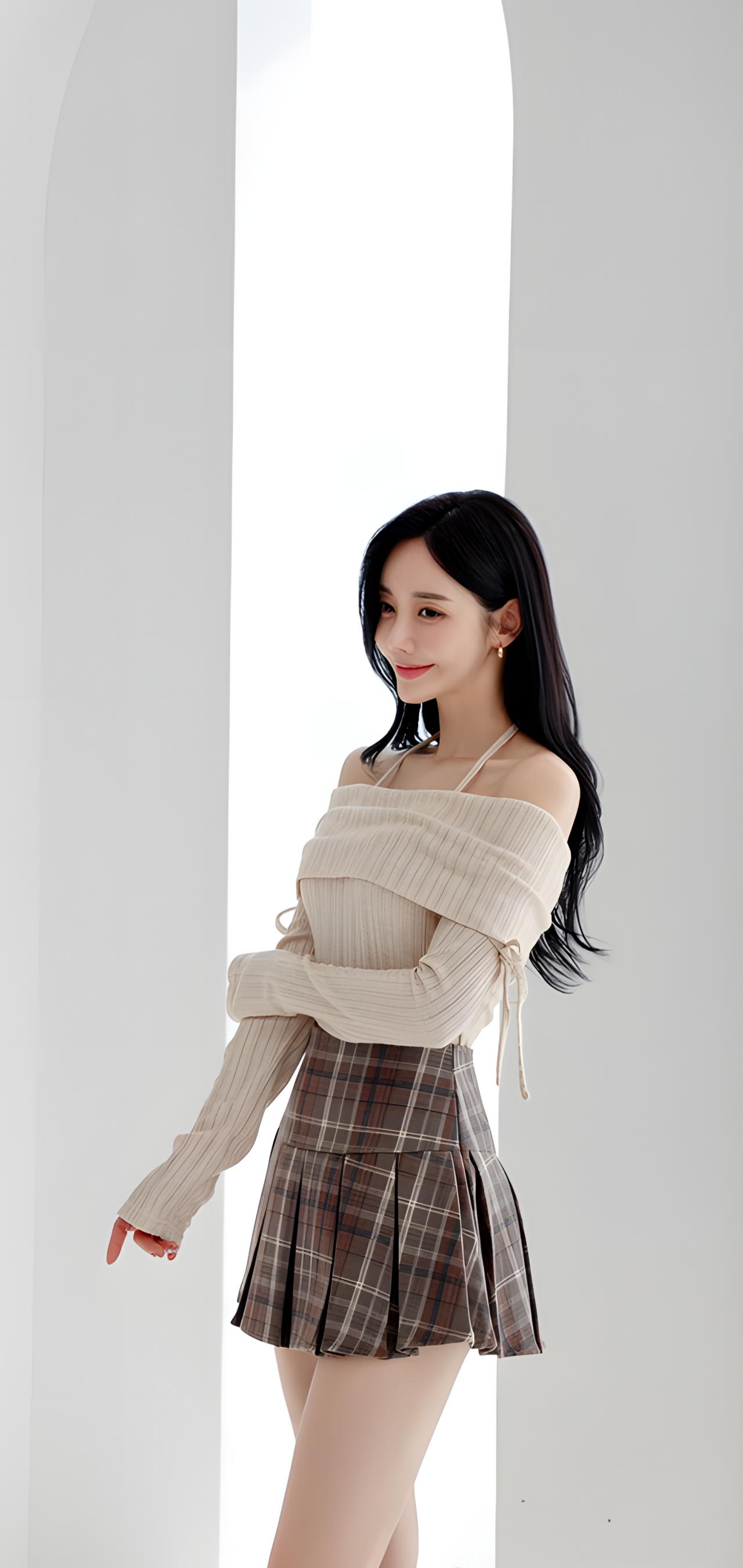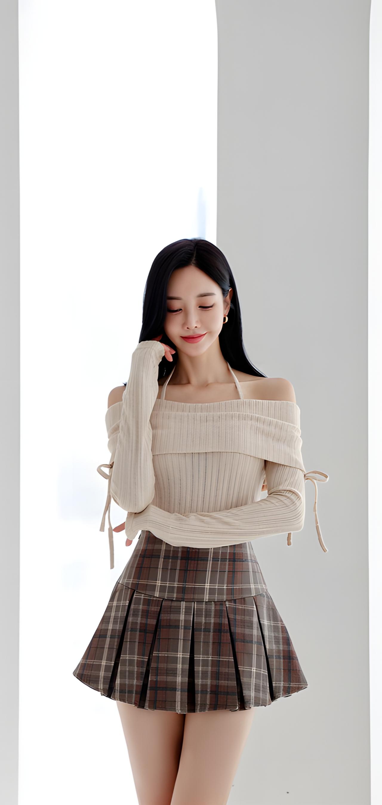 甜美学院风穿搭,米色毛衣搭配格子短裙,青春活力满满!💕