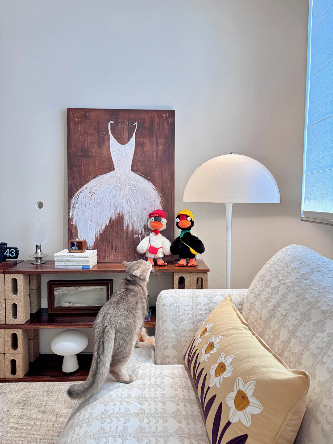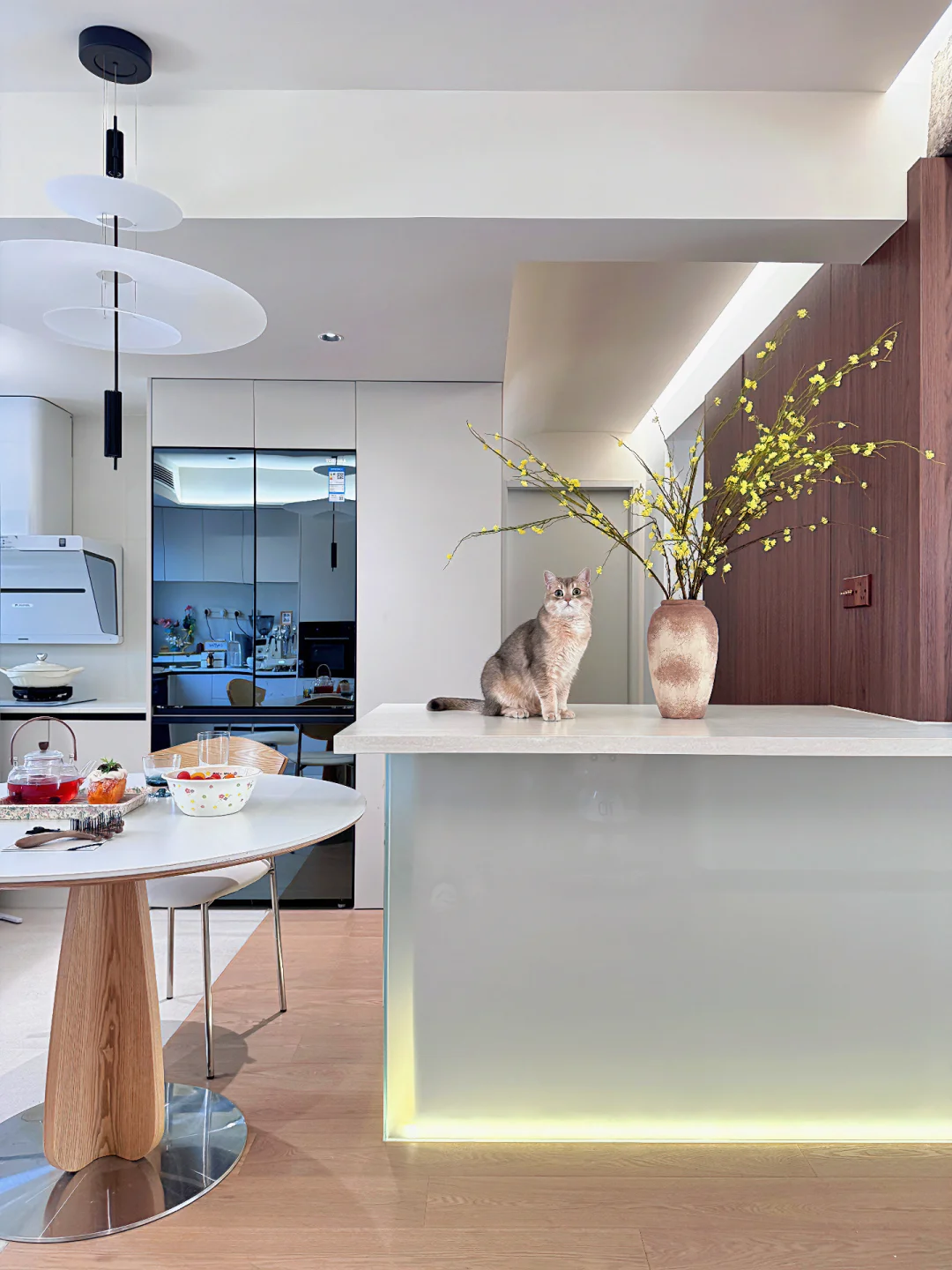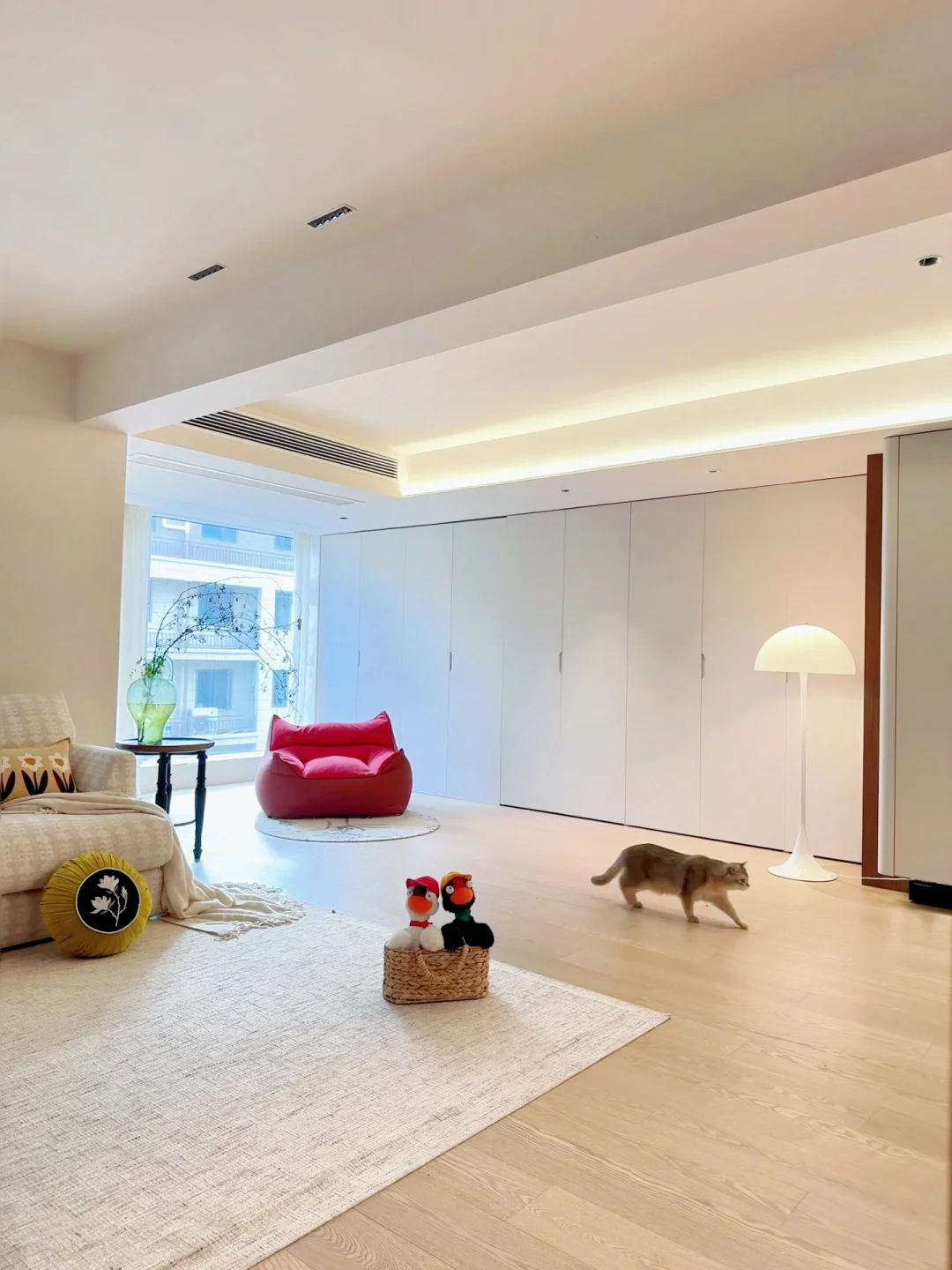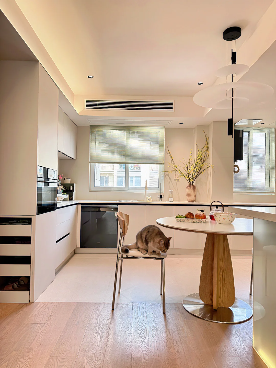 ✨ 新家入住快一年,建面122㎡、套内102㎡。 当初狠下心砸掉一间次卧,就为了换客厅这份开阔通透的松弛感。没有复杂的硬装,原木地板踩着踏实,暖黄灯光裹着温柔,越住越觉得耐看又安心。 家里有两个蹦跳的小丫头,一只黏人的小猫咪,还有满沙发软乎乎的公仔。日常吵吵闹闹,却也热闹得刚好。我总爱守在餐桌旁,看她们在地毯上追着跑,猫咪蜷在脚边打盹,柔和的落地灯漫出暖光,连空气都软乎乎的。 不用多富有,也不用多华丽。在小县城拥有这样一个满是烟火气的家,有孩子的笑声,有猫咪的呼噜声,就已经是我能想到的,最踏实的幸福了。