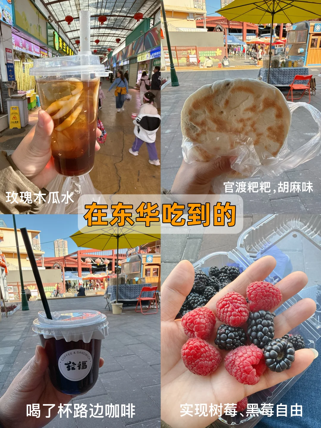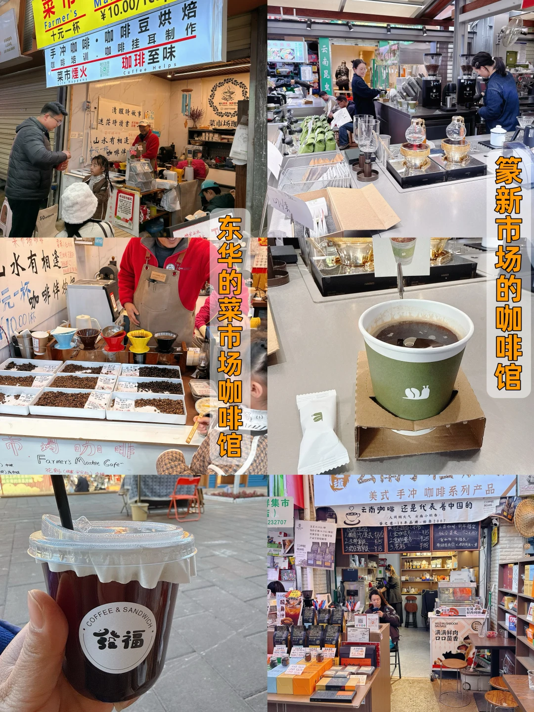 东华是那种本地人略多,规划得很干净有规模的菜市场,价格比篆新平,但据说游客去多了也比以前贵了一些。要注意门口几家堆着卖蓝莓、车厘子的店容易踩雷,据说会换货,现场买的和拿回家的很容易差别很大。也藏了一家小小的菜市场咖啡馆,主营手冲咖啡,人还挺多,我路过看到要等很久就算了。