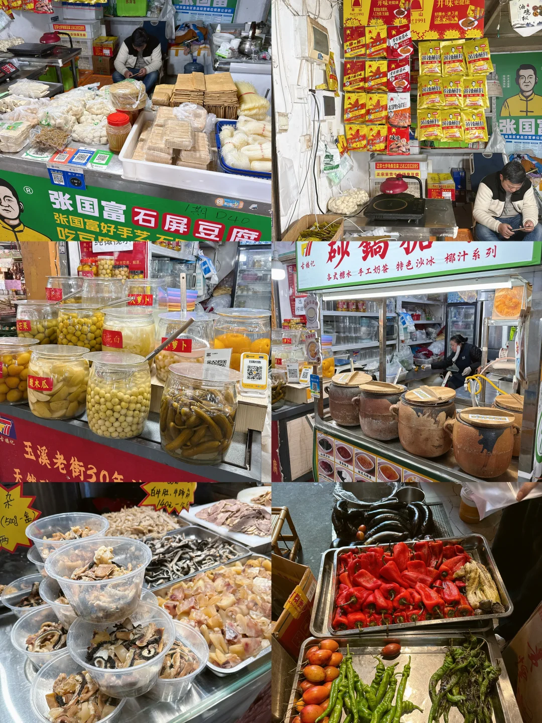 还有各种云南特色的点心、熟食、拌菜、酱料、腐乳: