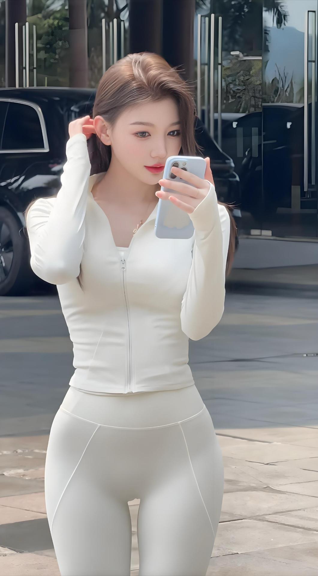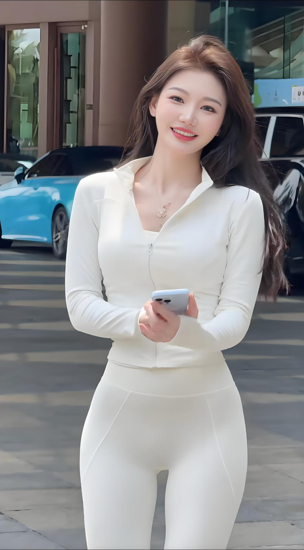 时尚博主户外拍摄,手持相机,白衣白裤,自信满满!📸💃🏻