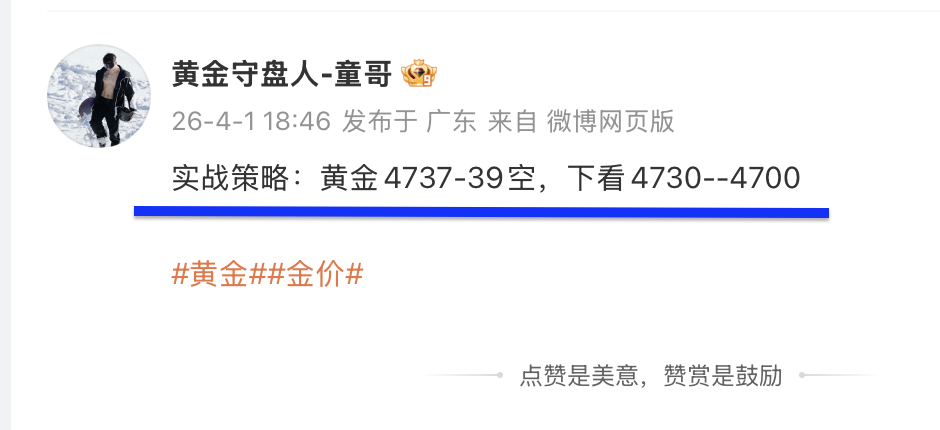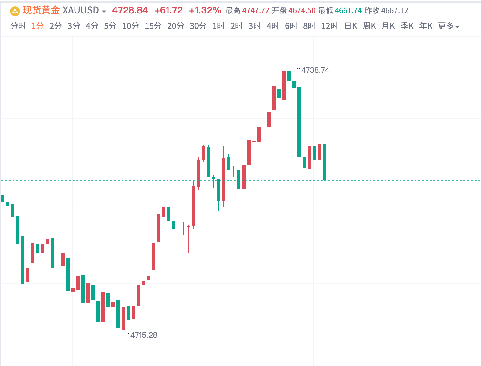 黄金4737空,抵达4728平仓,斩获90点!