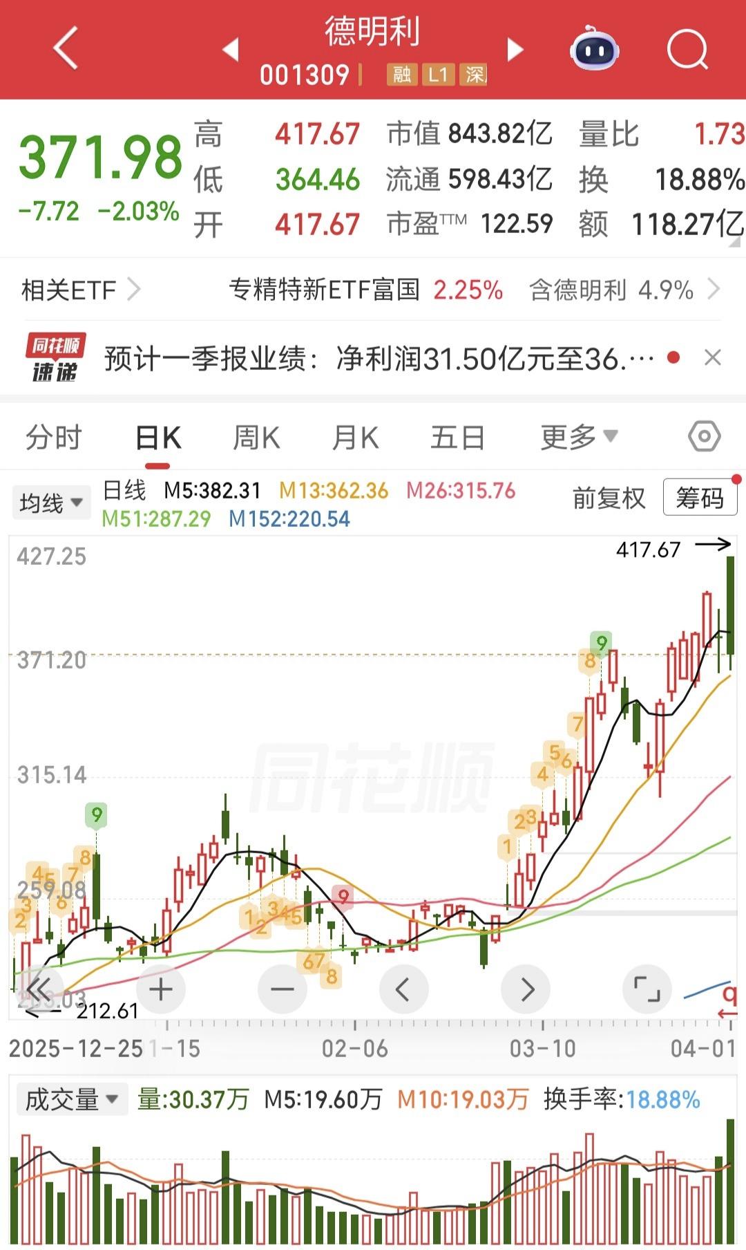 涨停爆头,百亿资金被套! 今天德明利开盘一字涨停,结果开板后一路暴砸,收在水下2个点。 涨停板上的买盘近15个亿,套麻了。 该股全天成交118.3亿,接近最低点收盘,其他下跌途中试图抄底的也基本全被埋,估计被套的能有近百亿。