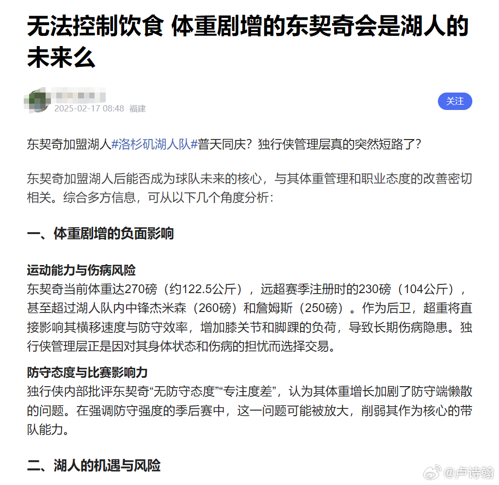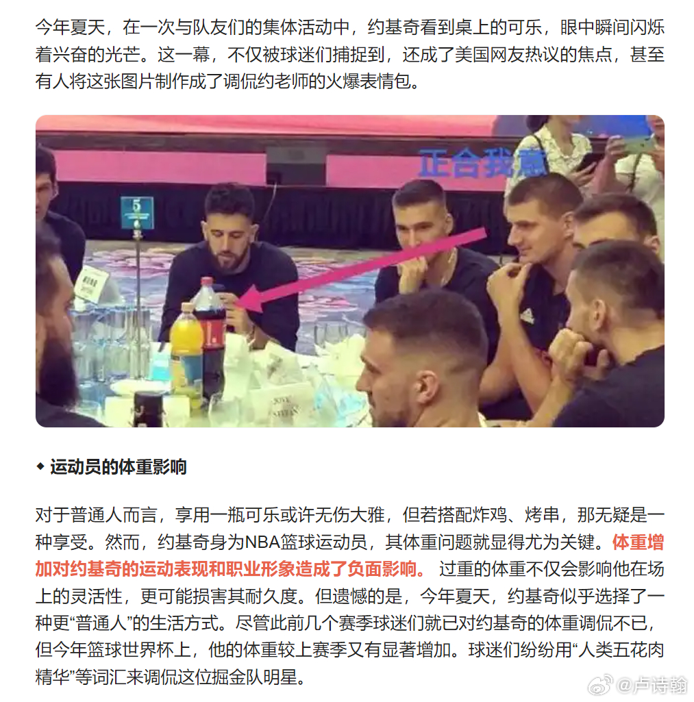 约基奇因为体重过大被骂过,不控制体重,体能消耗偏大,季后赛顶分局有隐患,所以应该减重。周琦这边呢?因为体重不够也被骂过,没体重没肌肉,一点对抗能力都没有,怎么去篮下混?所以必须增重。