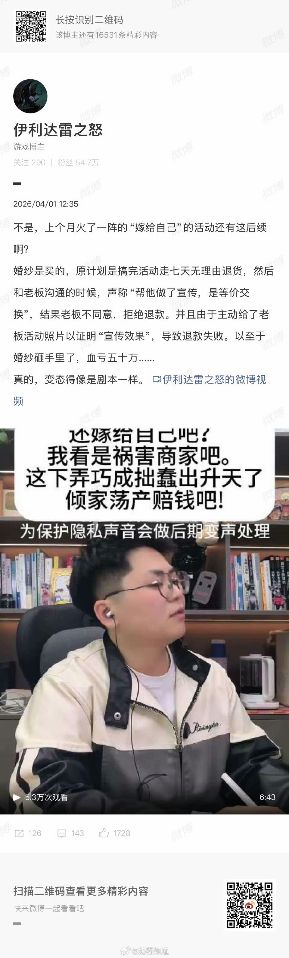 以为是段子,居然是真事。一群老仙女搞了个“嫁给自己”的活动,本来打算把婚纱搞个七天无理由退货,结果没有操作好没退成,一共50万的婚纱费砸到手里了……这群人真的不想结婚?看不上别人和别人看不上你,是有区别的。