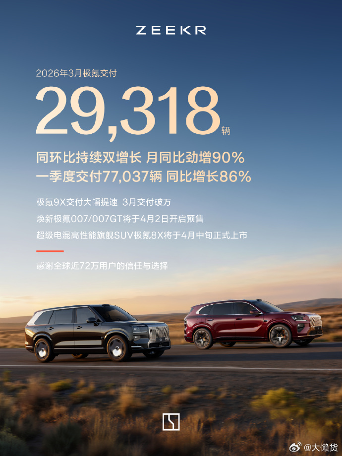 极氪3月交付29318辆 👍👍👍