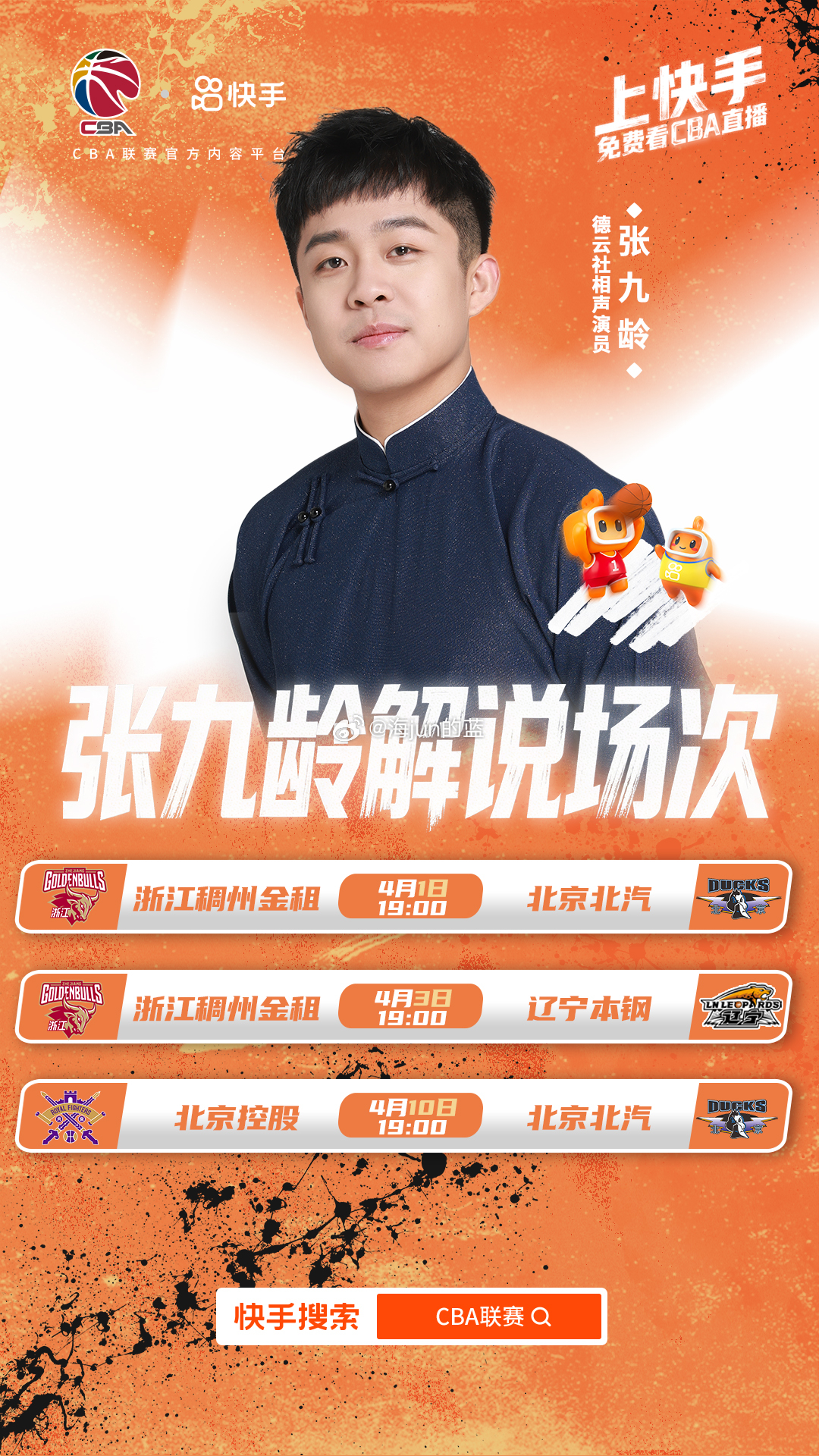 与此同时,快手CBA直播又“搞事”了,请来了张九龄来解说,这是他职业生涯的篮球解说首秀,他会在直播间爆出什么金句很让人期待。