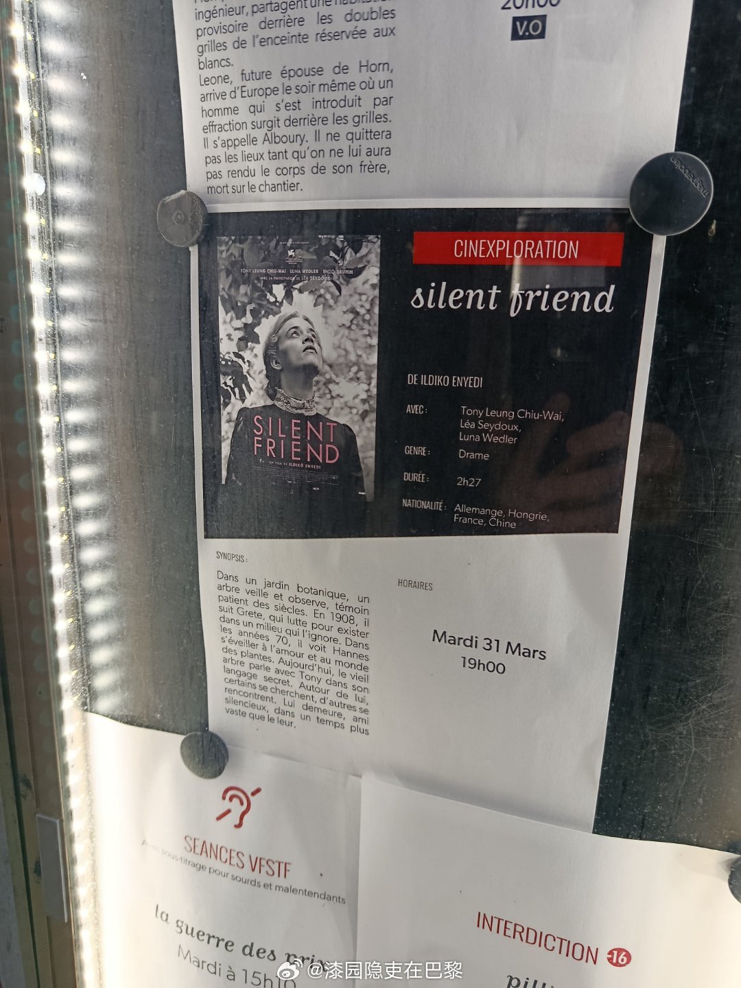 昨天在法国首映场看了《寂静的朋友》(Silent Friends),而它也在今天正式在法国公映。很少有电影在第一时间就让人有这种感觉——人已经离场,但情绪还停在里面。
