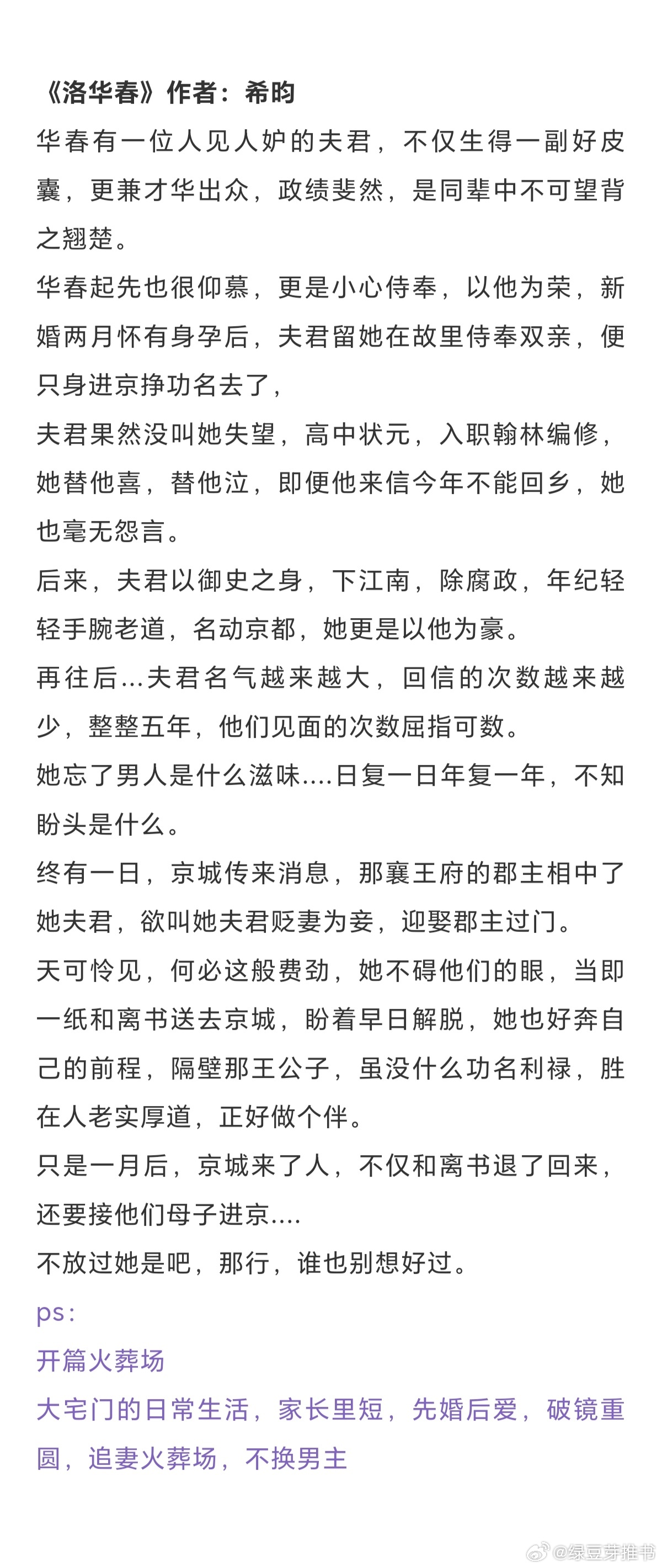 现言:《涩果》作者:岁见《今夜来雪》作者:寒雨连山《明知故陷》作者: 时星草《重回爸妈离婚时》作者:花日绯 《春雀记》作者:一寸舟古言:《洛华春》作者:希昀《当我被反派男主缠上后》作者:草灯大人 《汴京春闺》 作者:春未绿《被偏执继兄逼嫁后》作者:灿若星月《虐错对象后,被清冷仙君强取豪夺》作者:缠枝葡萄古言言情小说推荐现言