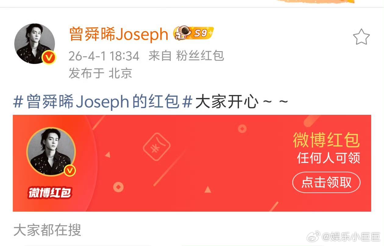 曾舜晞发红包我终于明白了为什么大家都说曾舜晞是“宠粉狂魔”,愚人节也不忘撒福利