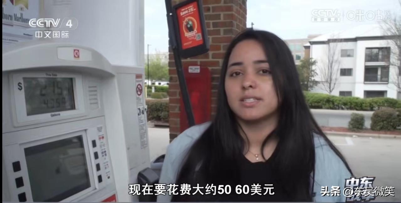 美国的油价也涨了,这位女车主说,最近油价疯了,太高了,接受不了了。 她说,以前加满一箱油只要35或40美元,现在要50、60美元。 美国的油价高不高呢?