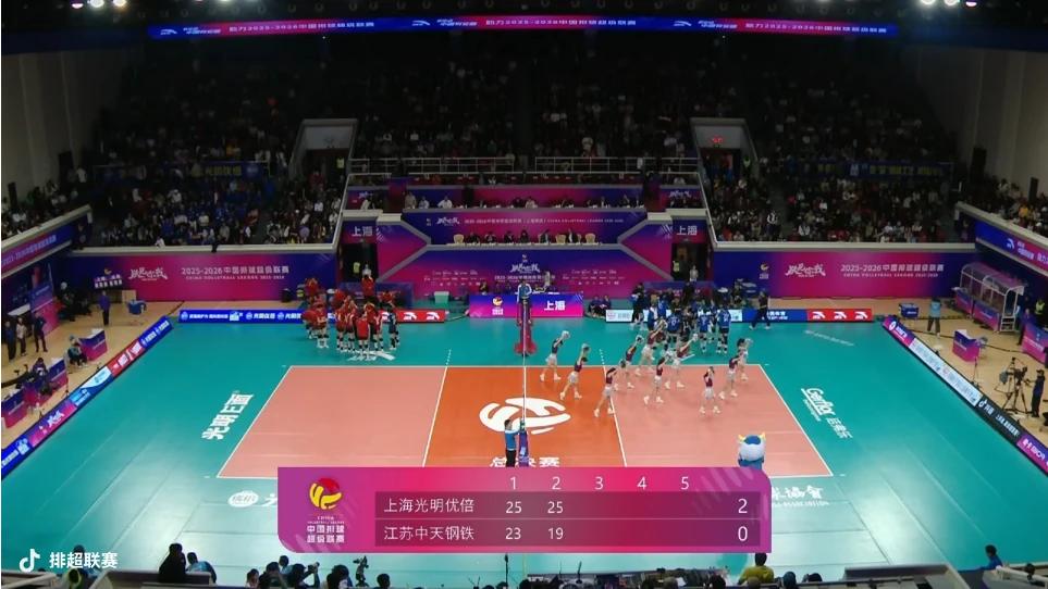 上海女排在第二局以25:19的比分再下一城,目前大比分2:0暂时领先对手。