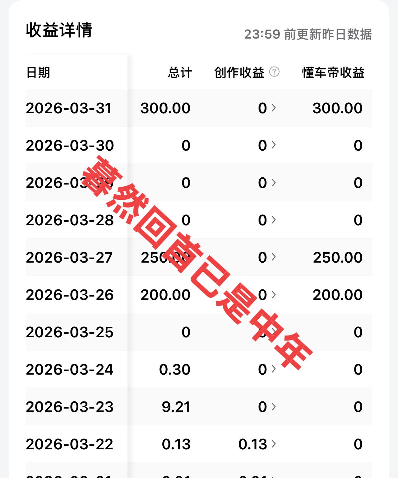 家人们,晚上好呀!我又要出来造了,别问,问就是加油包嚯嚯完了[偷笑] 今天又来晒收益了。虽然头条已经连接9天为鸭蛋🥚了,但是没关系,我还有老董家呢,老董家又到账300元,真香! 我这个人呢,惯来秉承“独乐乐不如众乐乐”的原则,希望大家一起加入进来zao哦,特别是对于像我这种靠写征文赚收入的人来说,再合适不过。想加入的人可以搜我的文章:怎么加入懂车帝 加油吧,少年[比心]