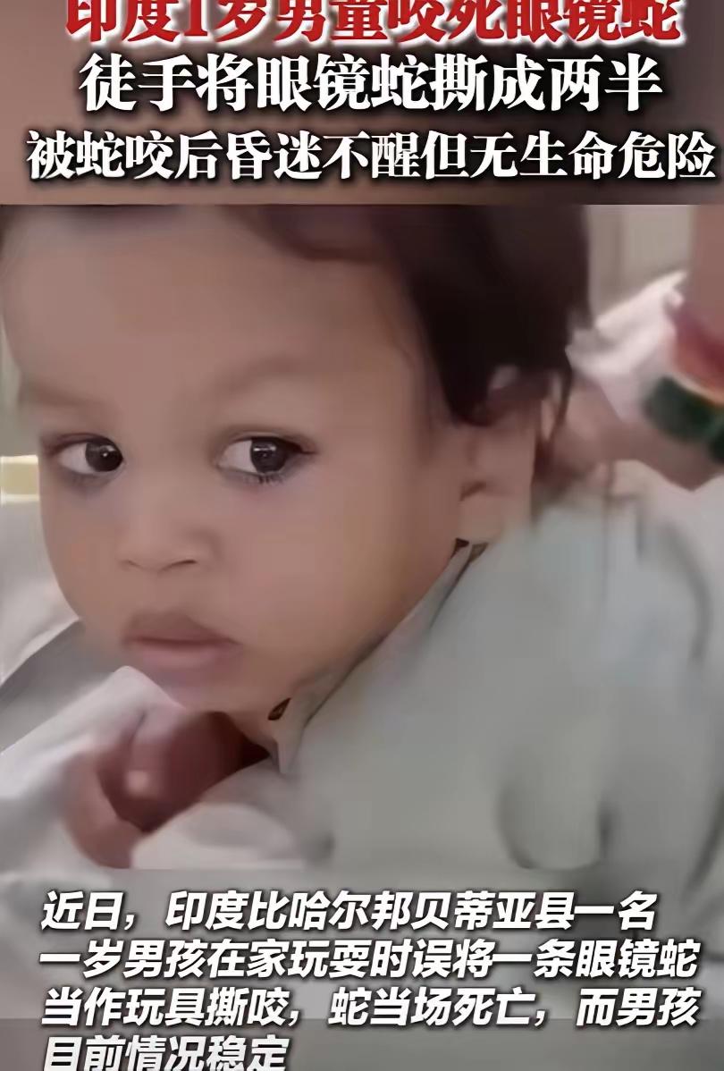 2025年7月印度,1岁男童玩耍时,眼镜蛇突然闯入家中,男童误把它当作玩具,竟然直接捡了起来,然后一口咬住眼镜蛇的头,硬生生把这条蛇给咬死,咬了蛇以后,男孩也昏迷不醒,医生说虽然昏迷,但不足以致命!网友:天下之大无奇不有! 这个男童名叫戈文达,家住印度比哈尔邦贝蒂亚县,事发当天是7月25日下午,那条闯入的眼镜蛇长约0.6米,悄无声息溜进院子时,戈文达正蹲在地上玩石子。他没见过这种长条形的“玩具”,伸手就抓,蛇受惊后立刻缠住他的双臂,吐着信子,发出嘶嘶声。 祖母就在旁边,吓得魂飞魄散,尖叫着冲过去想拉开蛇,可没等她靠近,戈文达已经张开小嘴,狠狠咬住了蛇的头部,牙齿嵌进蛇鳞,小小的身体还使劲撕扯,硬是把蛇撕成了两半,蛇当场就没了动静。这一幕让在场的家人都惊呆了,谁也没想到,一个刚学会走路的孩子,能有这么大的力气和胆量。 戈文达咬完蛇没几分钟,脸色就开始发白,身体一软倒在地上,昏迷不醒。家人赶紧抱起他,疯了似的往当地保健中心跑,一路上不停地喊他的名字,可他始终没有睁开眼睛。保健中心的医生简单处理后,立刻安排转院到贝蒂亚的政府医学院附属医院,那里有更专业的蛇咬伤治疗设备和药物。 接诊的苏拉布·库马尔医生仔细检查后发现,戈文达的口腔和面颊有些肿胀,身上却没有明显的蛇咬伤口。进一步检测显示,他体内有蛇毒,但浓度不高,还没侵入中枢神经系统,暂时不会危及生命。 医生分析,蛇被戈文达咬住头部后,已经受了致命伤,根本没力气进行有效的毒液注射,加上戈文达咬蛇时,毒液主要进入消化道,胃酸中和了一部分毒性,这才让他逃过一劫。 医院马上给戈文达注射了抗蛇毒血清,同时用抗过敏药缓解肿胀,安排专人24小时监护。48小时后,他的肿胀开始消退,意识也慢慢恢复,眼睛睁开时,还对着床边的妈妈笑了笑,小手抓着妈妈的衣角,咿咿呀呀地说着只有他自己懂的话。 消息传开后,整个县城都炸开了锅。有人说这孩子是印度教神祇克里希那转世,因为克里希那的另一个名字就叫戈文达,神话里他小时候也曾降服过毒蛇卡利亚。村民们纷纷跑到医院探望,有人带来牛奶,有人送来祈福的花环,把病房挤得满满当当。 戈文达的祖母接受采访时,声音还在发抖,她说当时看到蛇缠在孙子手上,腿都软了,以为孙子肯定活不成了,没想到他竟然把蛇咬死了,这简直是奇迹。孩子的父母更是又后怕又庆幸,抱着戈文达哭了好几次,说以后再也不敢让他一个人在院子里玩了。 医生后来在新闻发布会上特意提醒,千万不要模仿戈文达的行为,毒蛇咬伤的死亡率很高,这次纯属幸运。他解释,眼镜蛇的攻击分两种,一种是注入毒液的“湿咬”,一种是不注毒的“干咬”,戈文达遇到的很可能是后者,加上蛇头受伤严重,毒液分泌受阻,才没造成致命伤害。要是换了其他情况,后果不堪设想。 网友们的讨论也吵翻了天。有人说这孩子天生就是勇士,长大了肯定能成大事;有人调侃“新手保护期”真的存在,连毒蛇都奈何不了他;还有人担心孩子以后会不会不怕蛇,提醒家长一定要加强安全教育。 但更多人在感叹生命的神奇,一个1岁的孩子,凭着本能的反抗,竟然战胜了致命的眼镜蛇,这在医学史上都很少见。 戈文达在医院观察了5天后,各项指标都恢复正常,顺利出院回家。出院那天,爸爸抱着他,妈妈牵着他的小手,祖母在旁边不停地念叨着神灵保佑。他似乎已经忘了那天的惊险,看到路边的小花,还伸手去摘,笑得一脸灿烂。 这件事虽然离奇,却藏着生命最原始的力量。戈文达的行为不是勇敢,只是孩子对未知事物的好奇和遇到危险时的本能反抗,可就是这份纯粹的本能,让他在生死关头救了自己。 它也提醒我们,生命的奇迹无处不在,有时候看似弱小的个体,也能爆发出意想不到的能量,而及时的医疗救助,更是守护生命的关键。 各位读者你们怎么看?欢迎在评论区讨论。