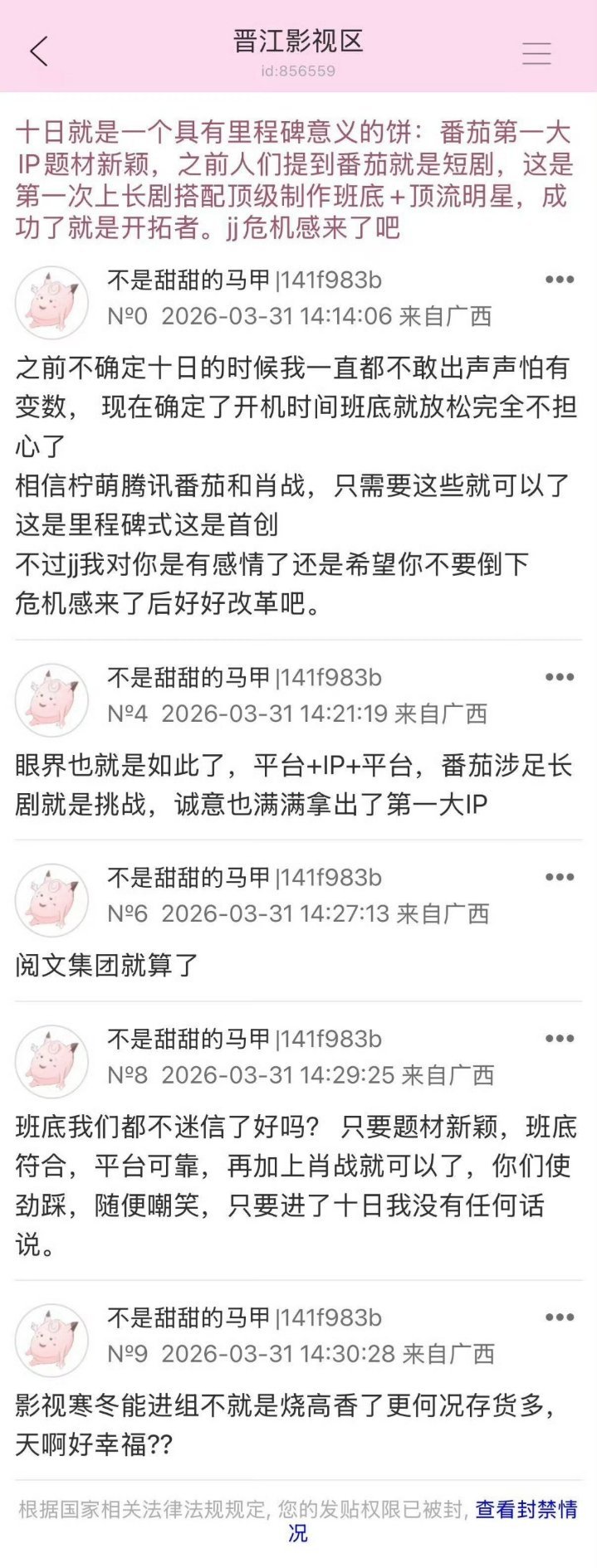 好搞笑的粉言粉语。番茄拍长剧早不是第一回了。老舅就有番茄投资。而且檀健次在拍的《何不同舟渡》就是番茄人气IP番茄投资哦,人家还有湖南卫视,上星剧的配置,古装谍战。以檀健次和番茄的合作来看,十日终焉很可能是人家不要的
