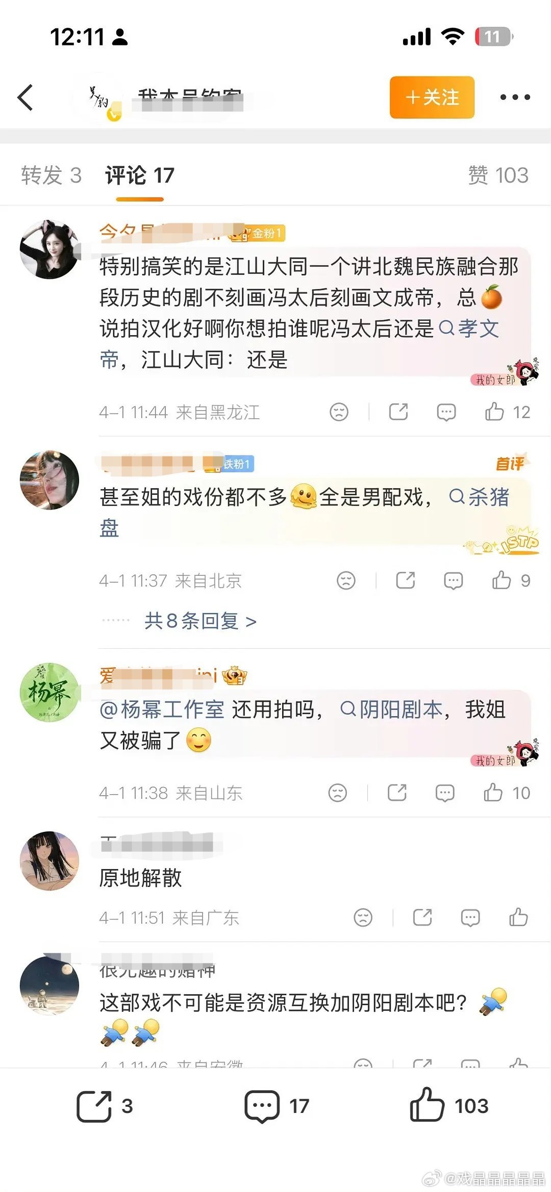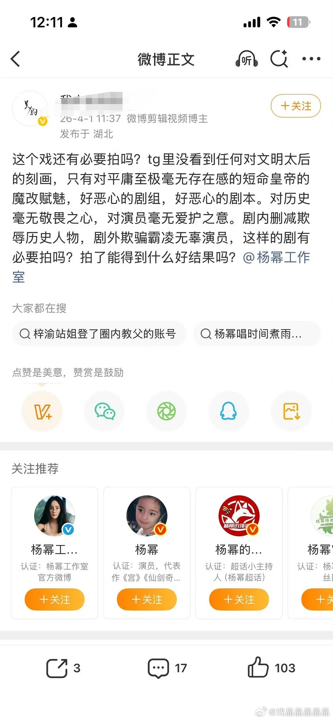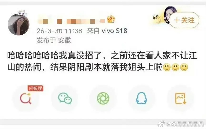 马蜂觉得杨幂遭遇了阴阳剧本,不想让姐姐继续拍江山大同了。