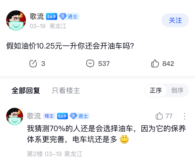 网友说油价10块钱,还是会选油车,因为保养体系更完善