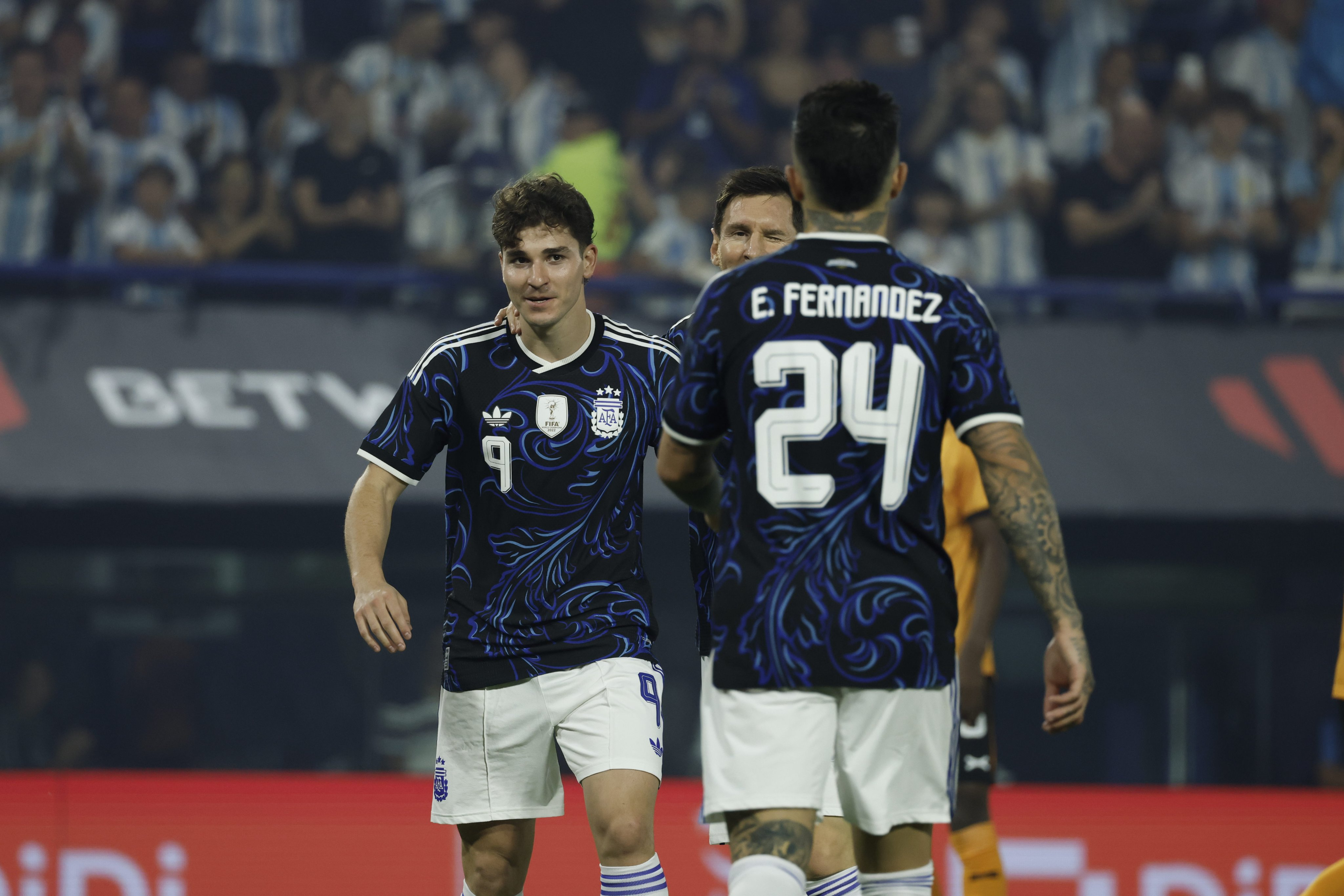 ❓️本场比赛也奠定了世界杯的常规首发阵容,门将毫无疑问大马丁;前锋梅西+阿尔马达+阿尔瓦雷斯/劳塔罗;中场恩佐+麦卡利斯特+帕雷德斯;后卫罗梅罗+奥塔门迪/利马+莫利纳+塔利亚菲科!