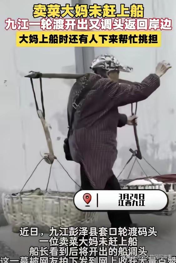 真的太暖了,这一幕看得人心里软软的。 八旬老人挑着菜担,一路急急忙忙就为赶一趟轮渡,没赶上时肯定又急又失落。 船都已经开出去了,本可以直接走,却特意掉头折返,就为等一位老人。 船长还主动下来帮挑菜担,有人上前搀扶,全程没有一句不耐烦。 没有惊天动地,就是普通人对普通人的体谅和温柔。 小小一船,载的不只是乘客,更是人间温情。 这才是最踏实、最动人的善良。照顾老老人 老人暖心瞬间