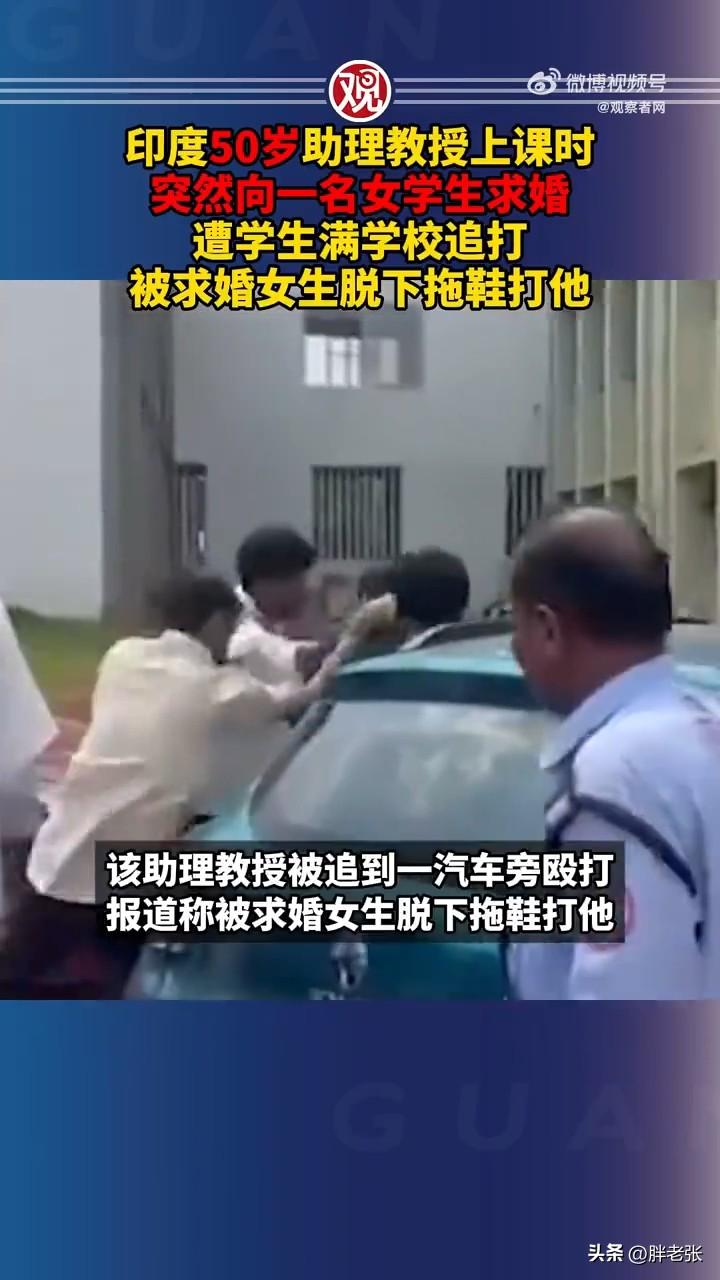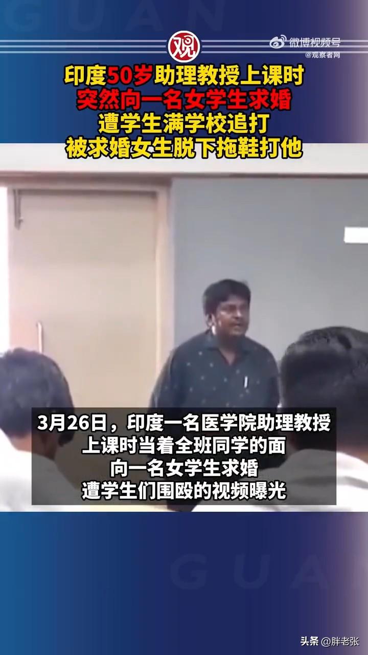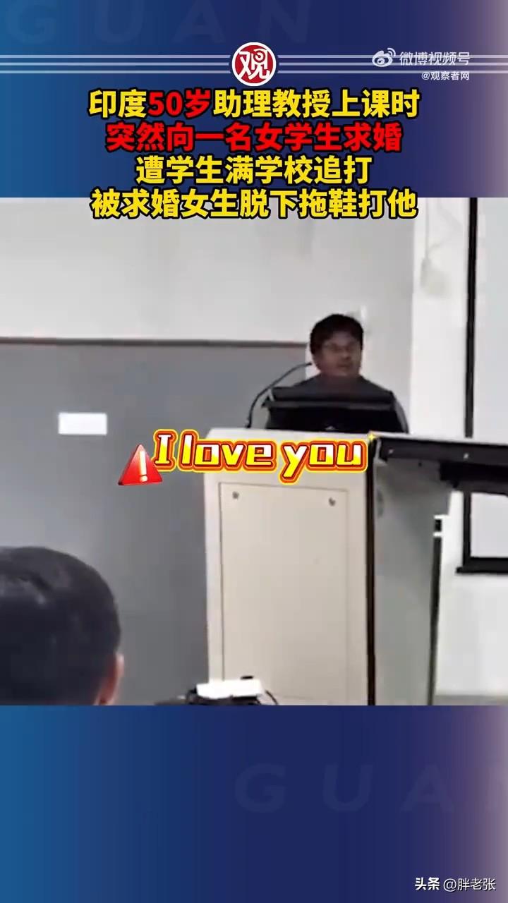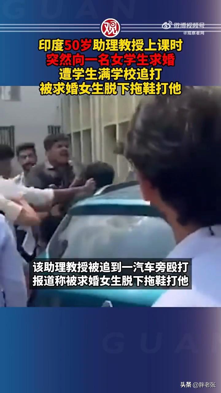 50岁助理教授上课时公然骚扰女学生求爱被打,真的是大快人心! 印度一名50岁的医学院助理教授在课堂上公然骚扰女学生并强行"求婚",遭女生用拖鞋反击后引发学生集体围殴! 真的是一点脸都要了,沙里夫都50岁了,居然在课堂上拿着巧克力声称要庆祝,因为19岁的女学生向他表白了,并当着所有学生的面大声说“I love you”,遭到女学生拒绝后还对她威胁! 女学生当众拒绝他并要求与校长对质,沙里夫离开教室时强行拉扯女学生,受到惊吓的女学生也没惯着他,脱下鞋子就抽起了沙里夫! 在场的学生目睹这一切后被不要脸的沙里夫点燃了内心情绪,大家一起围殴沙里夫,从教室打到了停车场! 真的是大快人心啊,这个新闻是近期看到所有关于印度新闻里最让人痛快的! 对于这样不要脸的老男人就不该心慈手软,你越软弱他可能会觉得你好欺负,会越变本加厉! 对于这样的人就要捍卫自己的尊严,给他一记迎头痛击!