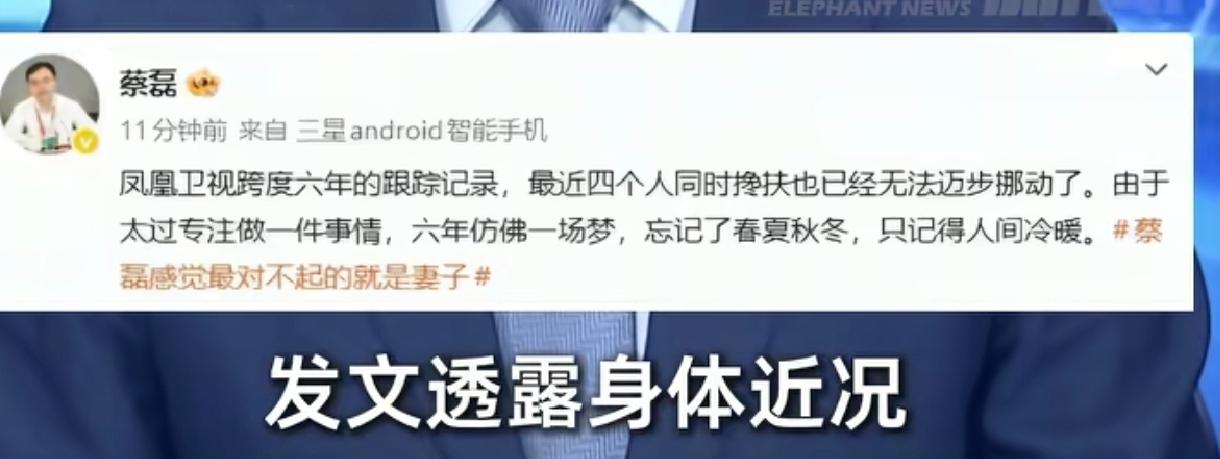京东原副总裁蔡磊开始进入生命倒计时了,他的妻子段睿接受采访时哭成了泪人。段睿边哭边说:“我现在真的很孤独,因为没有一个人能跟我共情”。也许有人不理解段睿这段话的真正意义是什么。是的别看蔡磊身患重病,但是他早已实现财富自由。所以对他的妻子段睿来说,物质生活是有保障的。 但是实话实说,我能感受到她的难过,她太累了,家里有一个长年需要照顾的病人,而且她老公以前还是公众人物,这么多年受外界关注,她的言行举止还要小心翼翼。 她没人诉说,虽然是柔弱女子,却时刻要装作坚强。还得时时关注老公的身体情况以及情绪。 因为外在的因素压得她无法释放,没有宣泄口,估计连个正常人的喜怒哀乐都做不到。 但是我觉得孤独是人生的常态,无法共情也是常态。这个世界大部分人都是孤独的,没人可以共情。人生本质就是一个人走完自己的路。每一个人都得自己走。