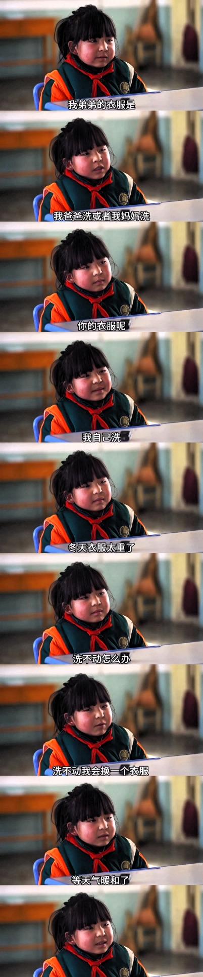 她平静得像一滩死水,就这样接受了父母不爱自己的事实。 在纪录片《香溢人间》中,这位小女孩的状态格外让人触动。眼神里缺少同龄孩子的活泼,多了几分疲惫,说话语气也显得沉稳又淡然,头发简单随意,看得出日常很少被细致照顾。 被问到梦想时,她说想做画家,画自己喜欢的宇航员。记者问她为什么不想当宇航员,她很平静地说自己上不了天。旁人提醒可以乘坐火箭和飞船,她只是轻声表示,自己肯定找不到这样的机会。 不是没有向往,而是从小就觉得,那些美好的事情与自己无关。在家里,弟弟的衣服由父母清洗,她的衣物则要自己动手。冬天衣物厚重,实在难以清洗,她就只能等到天气暖和再处理。等不到来自家人的关心,就只能等待季节变化,没有不满,也没有争执,只是默默接受现实。 本该被呵护、被鼓励的年纪,她却早早学会了独立承担,习惯了不被重视的生活。真正让人感慨的,不是生活条件的普通,而是一个孩子过早失去了对未来的信心,连追求梦想都变得小心翼翼。长期被忽略的成长环境,会慢慢影响一个孩子的自我认知,让她不敢相信自己值得更好的未来。 懂事不该是孩子的枷锁,被忽视也不该是她们的常态。每个孩子都应该得到平等的对待和基本的关爱,不因为性别、不因为排行而被区别对待。 希望更多人能留意到这样努力生活的孩子,给她们多一点关注与善意,让她们也能慢慢相信,自己同样可以拥有闪闪发光的可能。这样懂事的孩子,真的很让人心疼。
