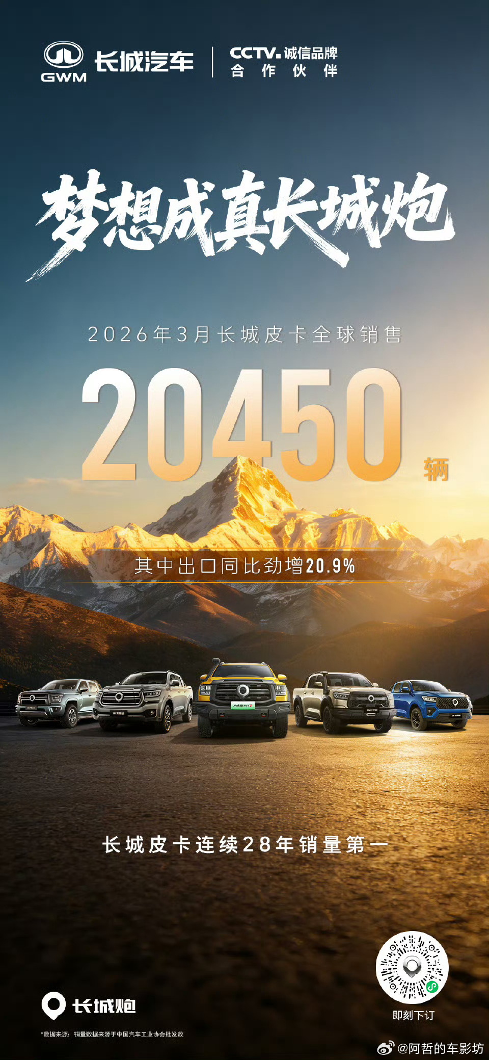 长城汽车第一季度销量269104台3月销量为106198台其中长城皮卡3月全球销量20450台哈弗品牌3月销量57021台魏牌7751台坦克18316台欧拉2529台